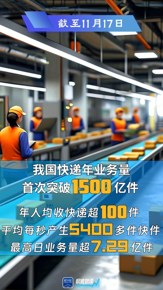 國家郵政局監測數據顯示,截至11月17日,我國快遞年業務量首次突破1500億件。今年以來,我國快遞市場保持繁榮活躍,發展質效不斷提升,加快推進產業升級、拉動生產消費,為更好提高經濟運行效率、暢通實體經濟循環作出重要貢獻。