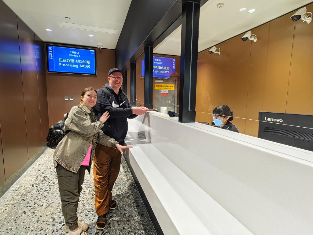 11月24日,正在辦理144小時過境免簽手續的俄羅斯旅客。(北京大興機場邊檢站供圖)