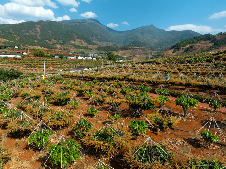 這是2024年4月9日拍攝的四川省攀枝花市米易縣新山傈僳族鄉中山村芒果產業園(無人機照片)。新華社記者 沈伯韓 攝