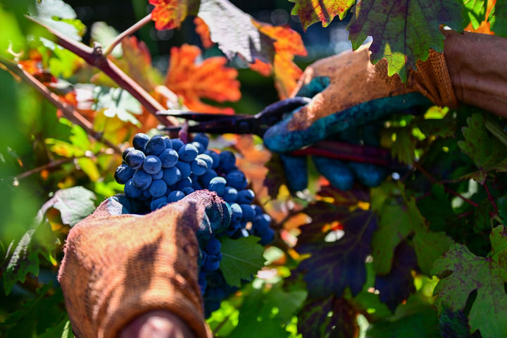 這是2024年9月9日在新疆昌吉市三工鎮二工村釀酒葡萄種植可視化管理示范園拍攝的葡萄。 新華社記者 丁磊 攝