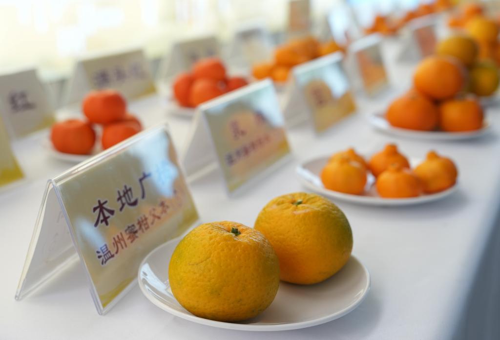 中國黃巖蜜橘種源研究中心內,各品種柑橘集中展示。新華社記者周佳誼 攝