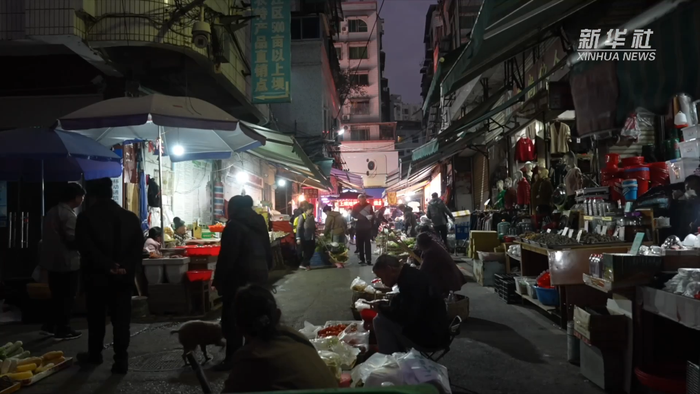 從菜地到市場,賣菜的過程是一場漫長的等待。十幾個小時,他們賣菜的地方也更換了兩次。午飯時分,夫妻倆到達小十字農貿市場,開啟當日的“下半場戰斗”。四點之后,他們又“轉戰”到當地政府特地為菜農開辟出的“夜間市場”,為下班回家的人們提供新鮮的選擇。