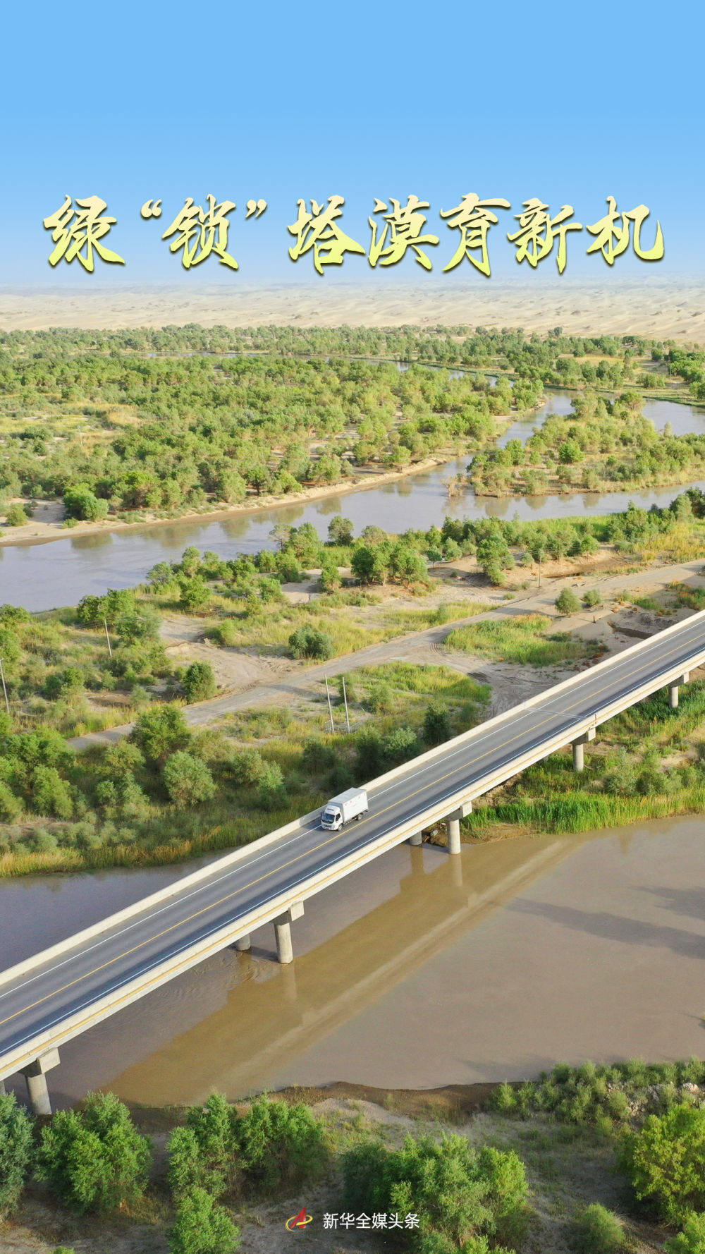 塔克拉瑪干沙漠周邊,更加濃郁的綠色正不斷加厚鋪展;新崛起的防護帶內,沙退人進、向新發展。這片土地正在續寫漫漫沙海里奮斗、探索的環保故事。