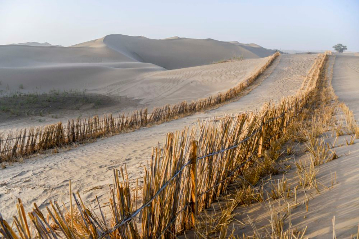 一條綠色防護帶,終將沙漠邊緣的片片綠洲緊緊相連。