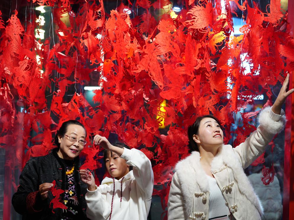 11月23日,市民在石家莊市新華區灣里廟步行街參觀非遺工作室。河北省石家莊市著力培育夜經濟新場景新業態,打造集美食、娛樂、購物、非遺等于一體的夜經濟消費圈,豐富市民夜生活。新華社發(閆志國攝)