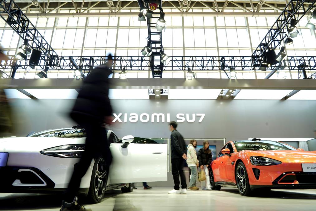11月28日,人們在第二屆中國國際供應鏈促進博覽會智能汽車鏈展區小米汽車展臺參觀。新華社發(那宇奇攝)