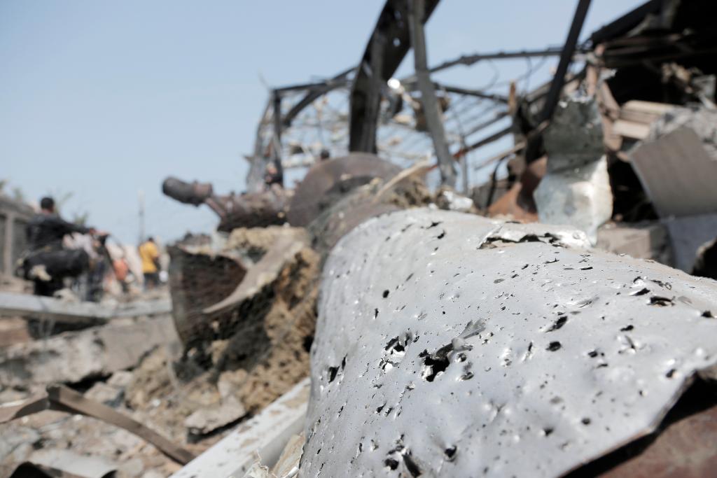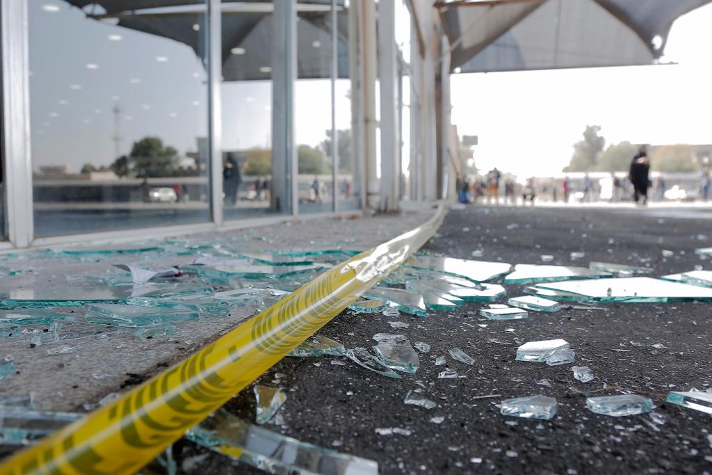 這是12月27日在也門薩那國際機場拍攝的地面上破碎的玻璃。新華社發(穆罕默德·穆罕默德攝)