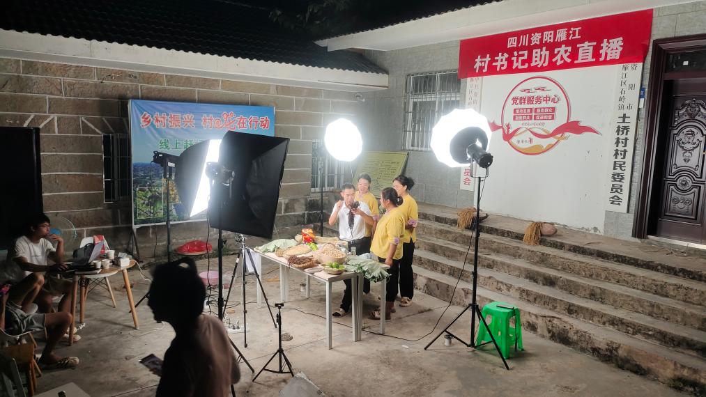 去年8月,土橋村成為雁江區“鄉村數字電商直播示范基地”。村里還把婦女們組織起來,組成“村花”直播隊。