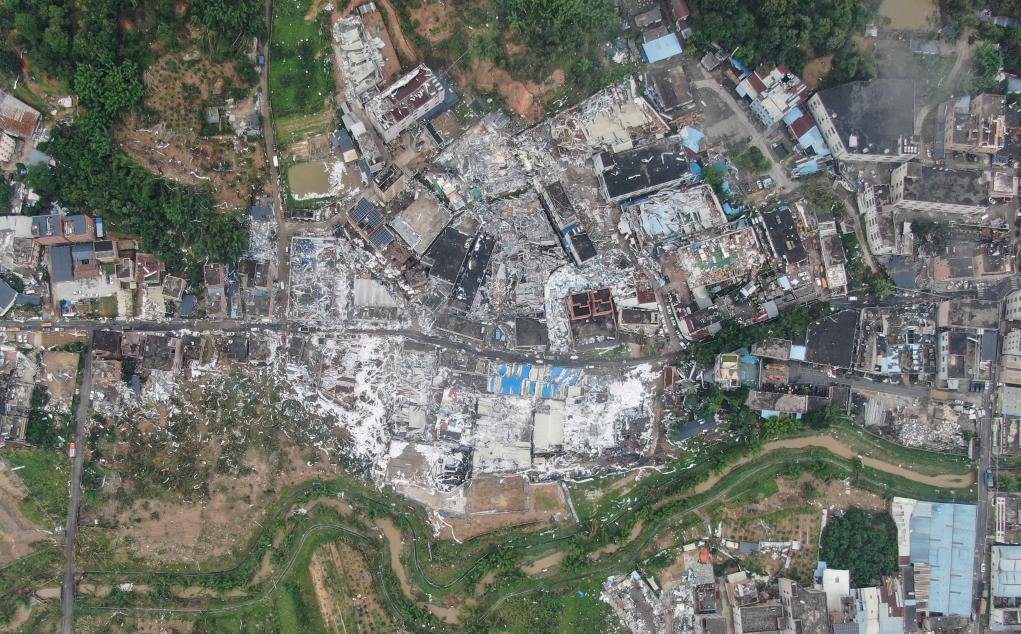 遭受龍卷風襲擊的廣州市白云區鐘落潭鎮光明村房屋受損情況(2024年4月28日攝)。