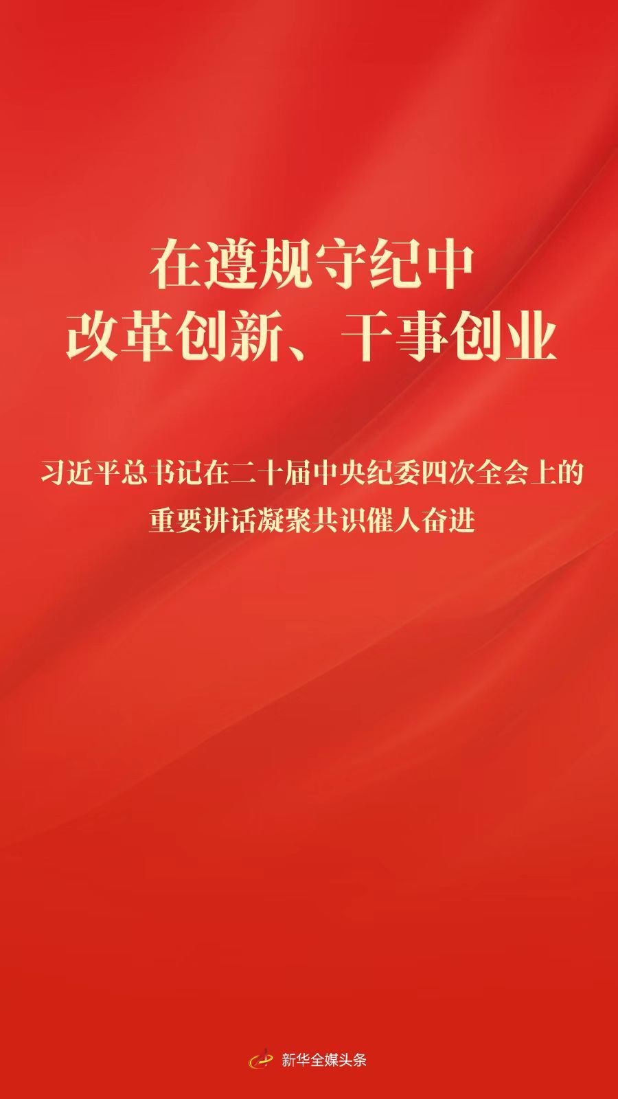 在遵規守紀中改革創新、干事創業——習近平總書記在二十屆中央紀委四次全會上的重要講話凝聚共識催人奮進-新華網