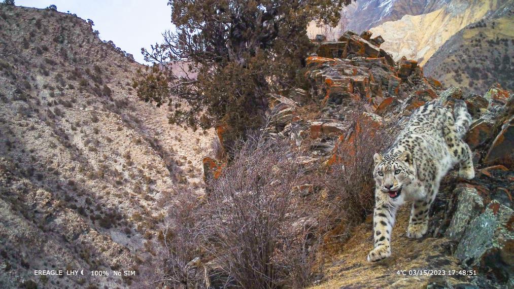 圖為2023年3月15日紅外相機拍到的雪豹畫面。(受訪對象供圖)