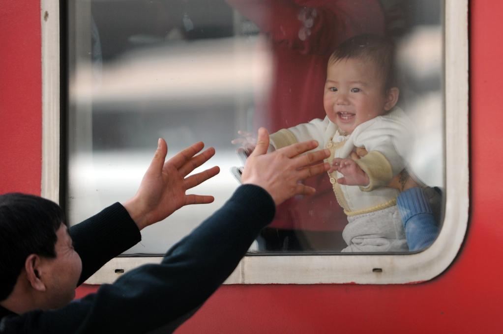 她趴在車窗前與送站的爸爸開心告別,早上6點多從北京出發,中午就能抵達一千公里外的老家。短暫幾天的分別之后,過年時,他們又將團圓。