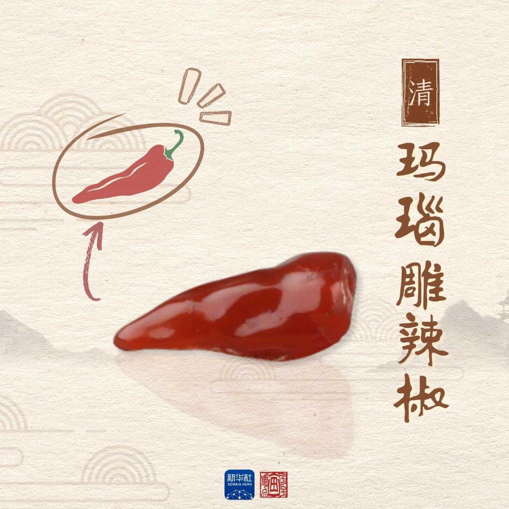 這件藏于南京博物院的瑪瑙雕辣椒栩栩如生,明代以前的中國古代器形,基本沒有辣椒造型。