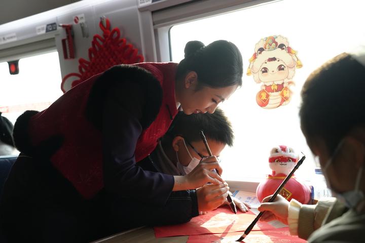 “沒想到在列車上還能參與這么有意義的活動,孩子們能在旅途中了解中華傳統文化,真的很開心?!闭骂5哪赣H湯女士說。