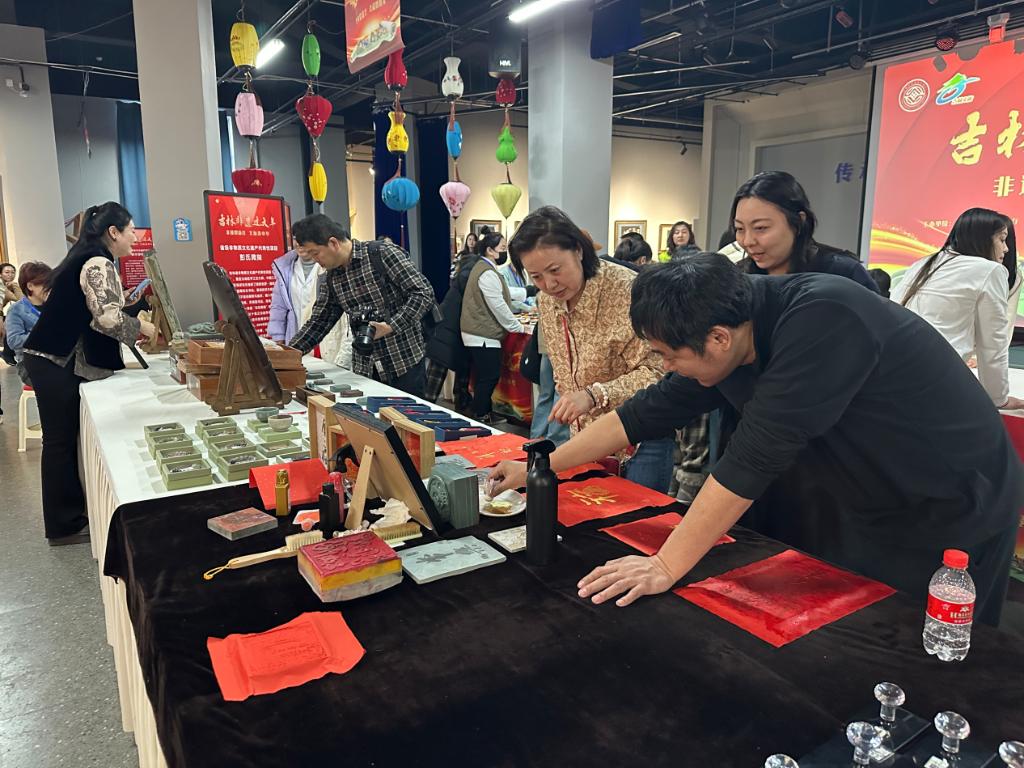 2025年1月14日,游客在“吉林非遺過大年”活動彭氏微刻展區體驗拓印制作。(受訪單位供圖)