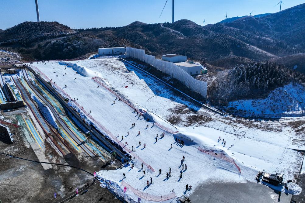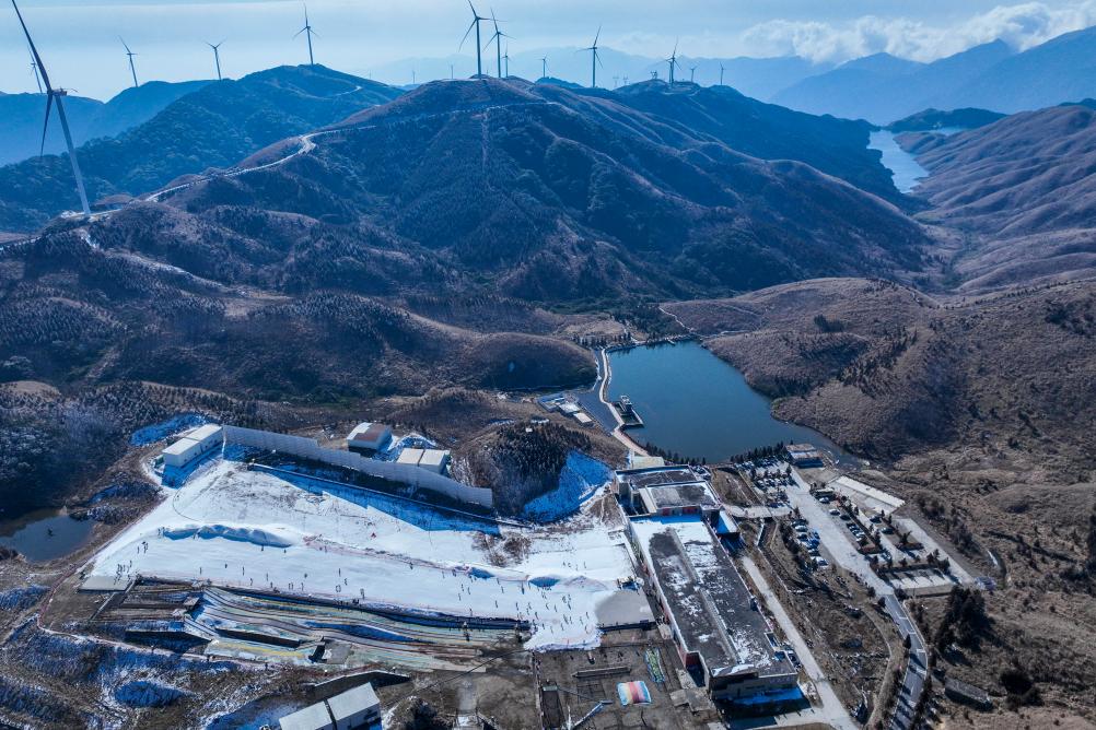 ↑這是位于廣西桂林市全州縣的天湖滑雪場。