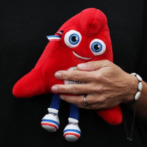 2022年11月14日,一位嘉賓在發布會現場手持2024年巴黎奧運會吉祥物。當日,巴黎奧組委公布2024年奧運會和殘奧會的吉祥物“弗里熱(The Phryges)”,巴黎奧運會和殘奧會將使用同一吉祥物形象,但在細節設計上有稍許差別。