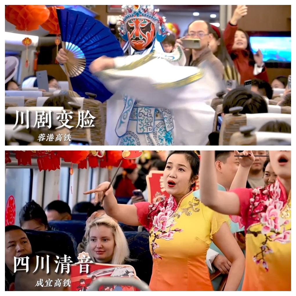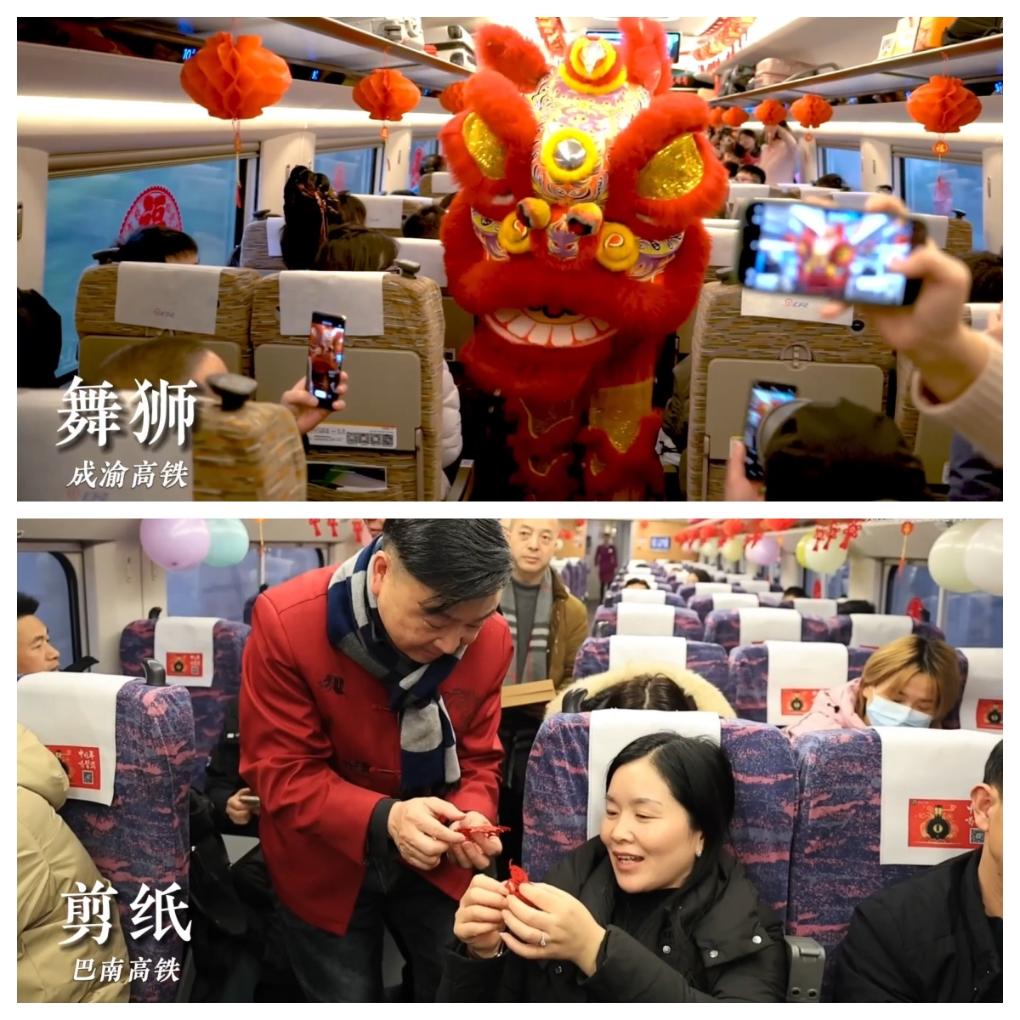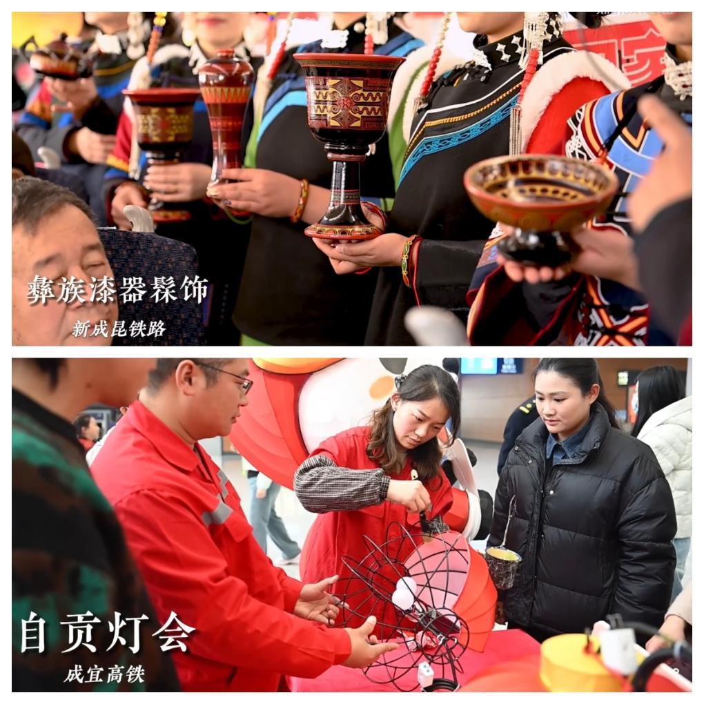 2025年春運期間,中國鐵路成都局集團有限公司聯合川、渝、黔三地文旅部門,在川青鐵路、巴南高鐵、滬昆高鐵、成渝高鐵等多條高鐵線路上開展了“高鐵非遺文化節”活動,結合線路特點,將羌年、剪紙、舞獅、侗族大歌、川劇變臉、彝族漆器、四川漆器等多項非遺項目“搬”進車廂,讓旅客們在出行途中樂享“流動文化盛宴”,這種“流動的文化課堂”讓春運旅途真正“走心”又“走新”。