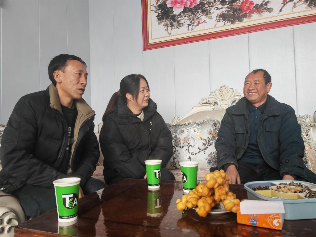 春節期間,白文英(左二)與趙永和(左一)在趙懷明(右一)家走訪。新華社記者 崔翰超 攝