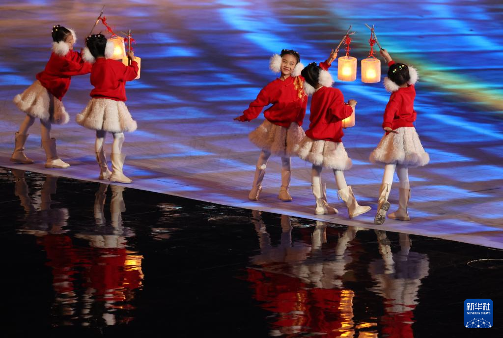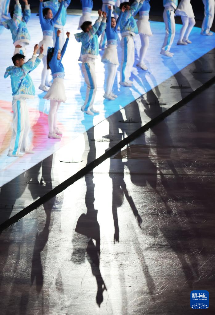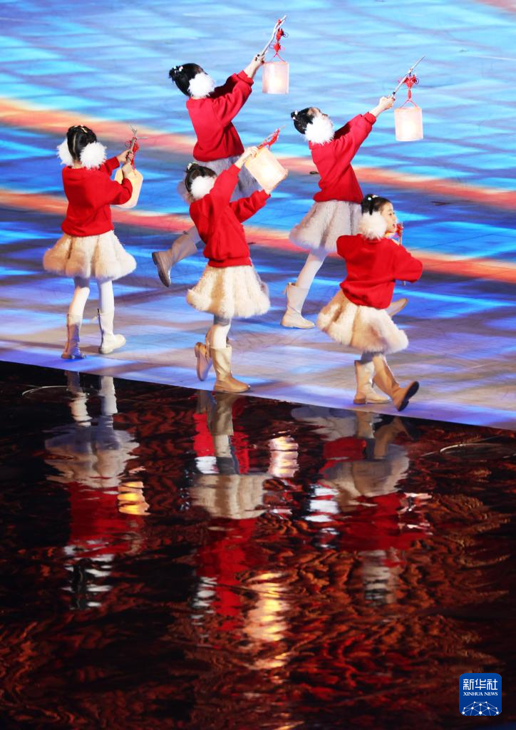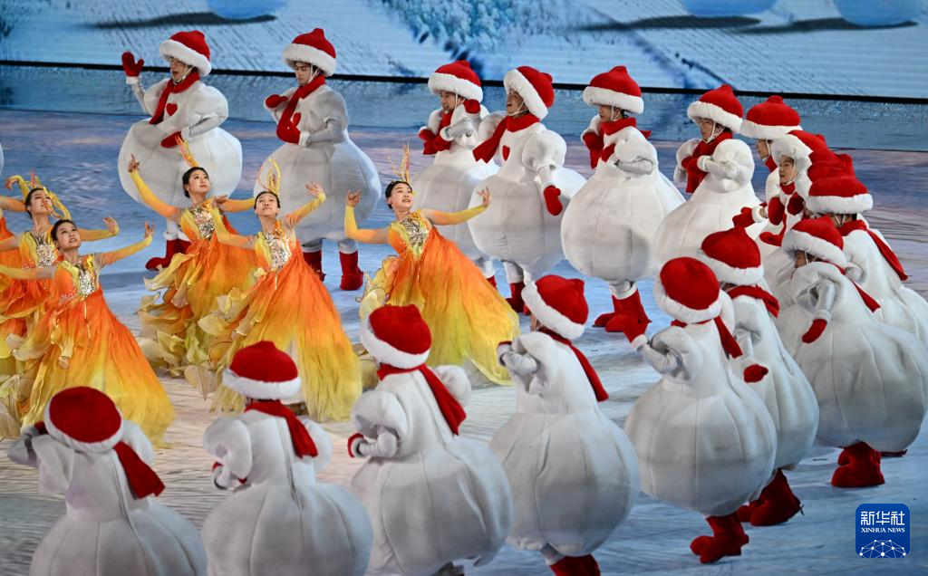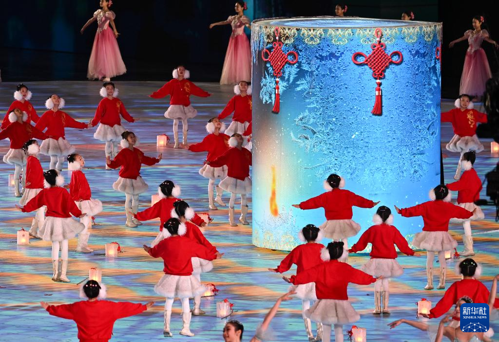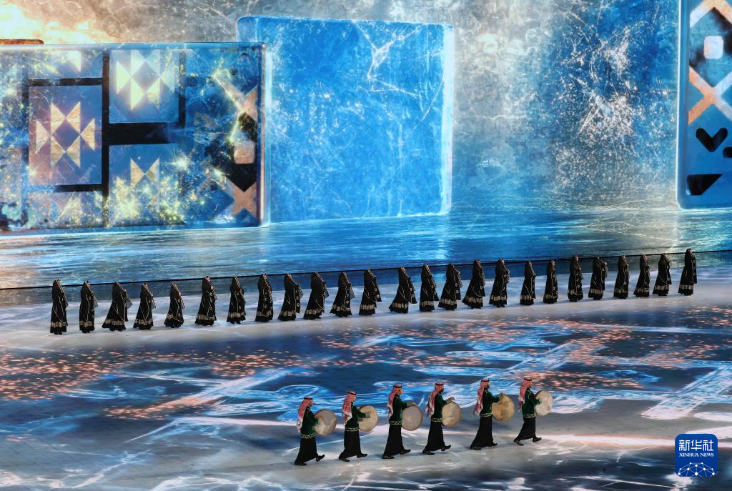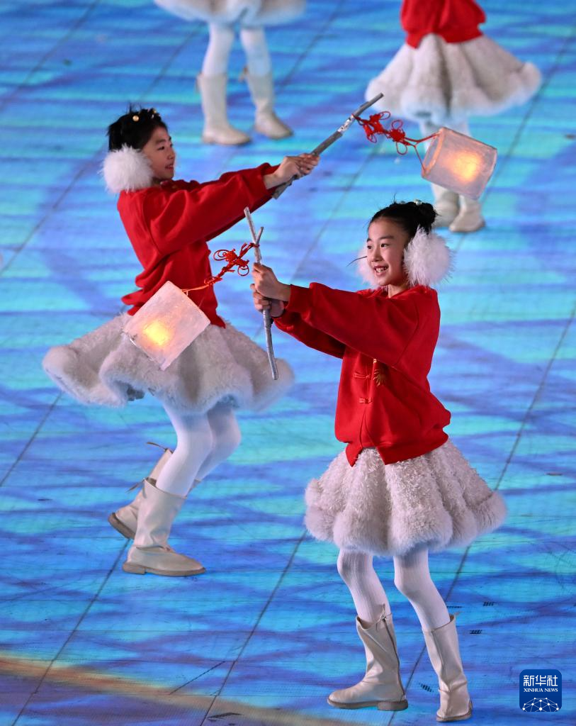 這是2月14日在閉幕式上拍攝的下一屆亞冬會主辦城市帶來的文藝表演。
