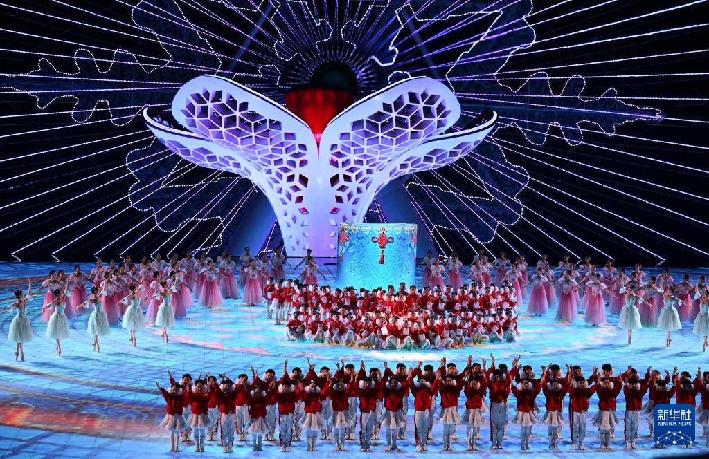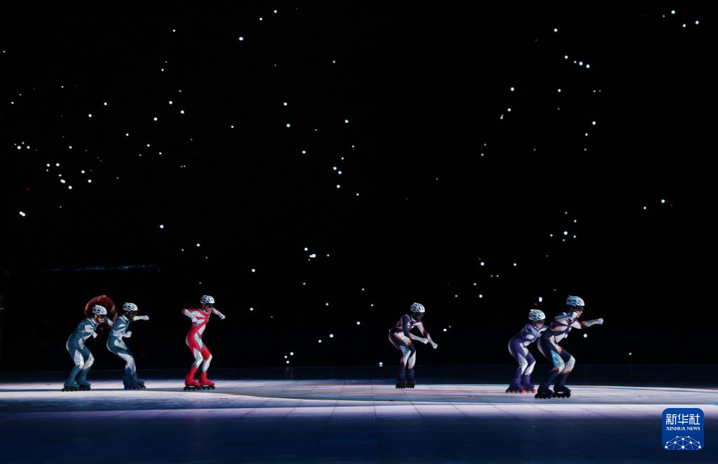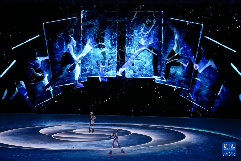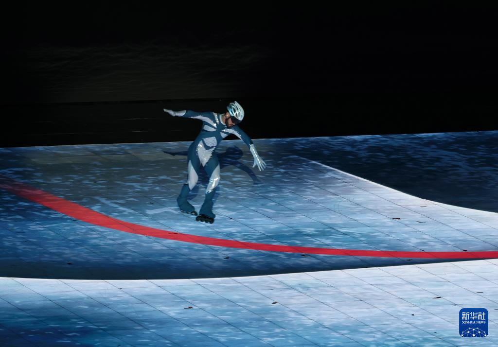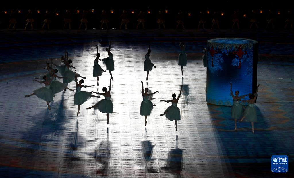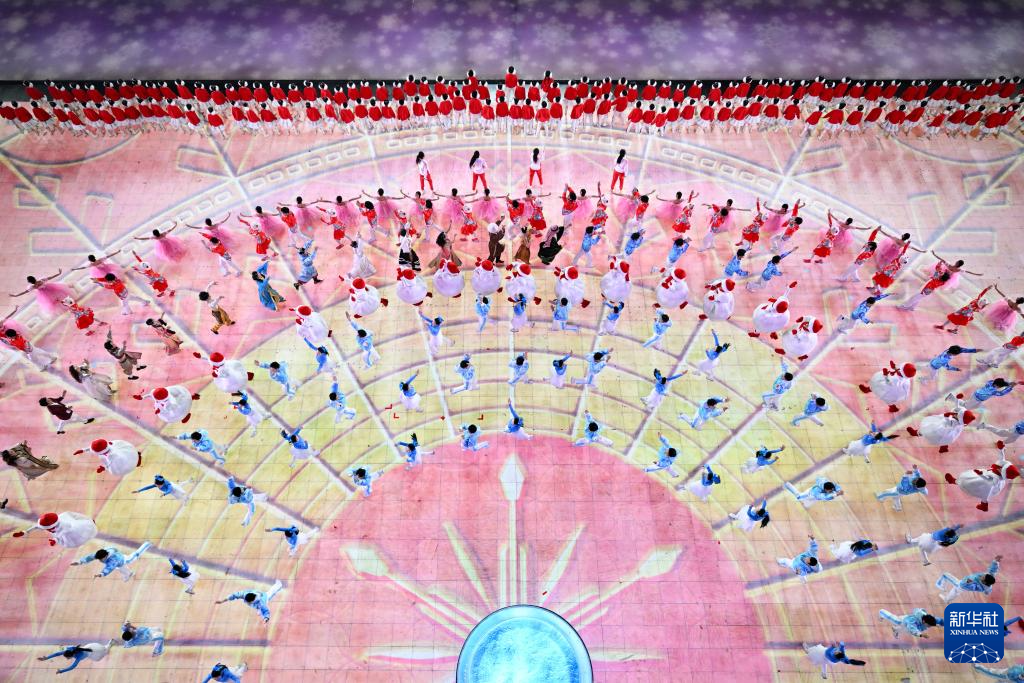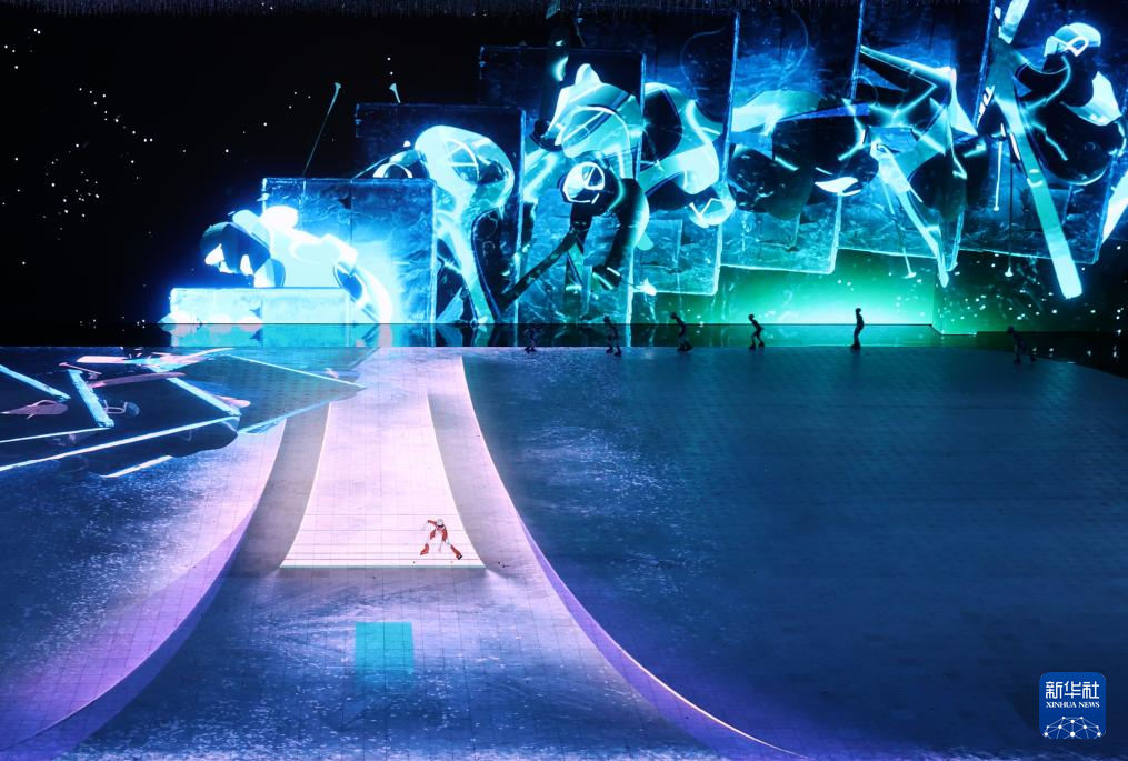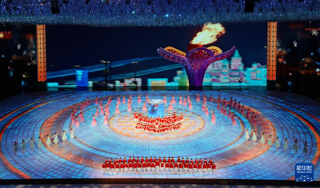 這是2月14日在閉幕式上拍攝的下一屆亞冬會主辦城市帶來的文藝表演。