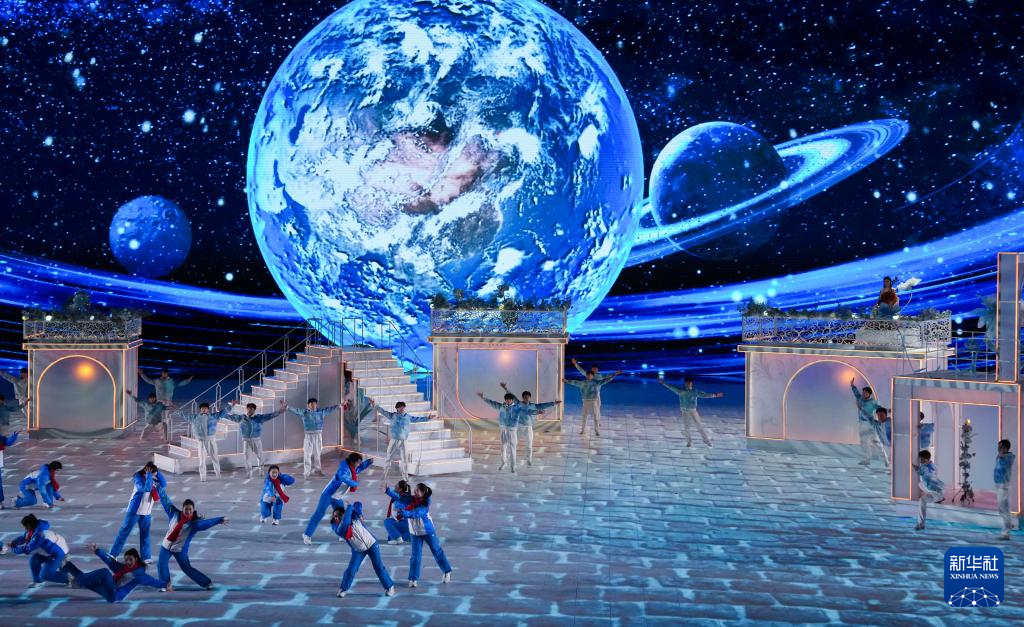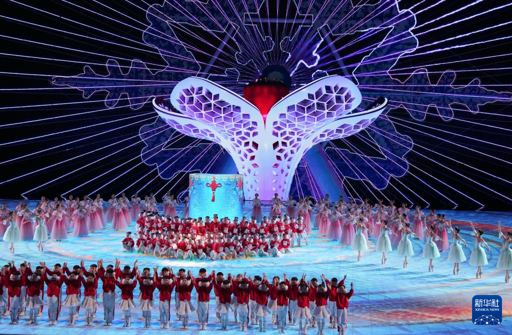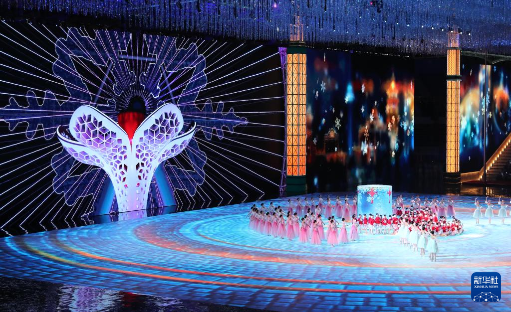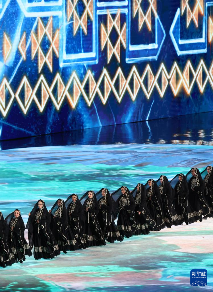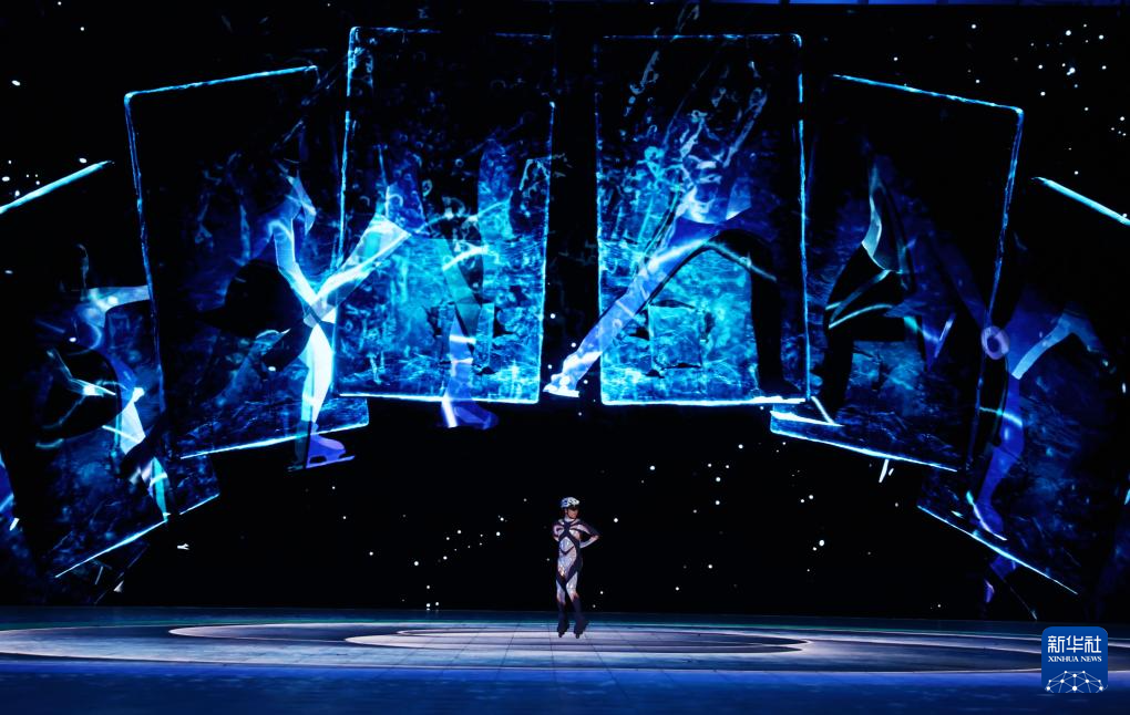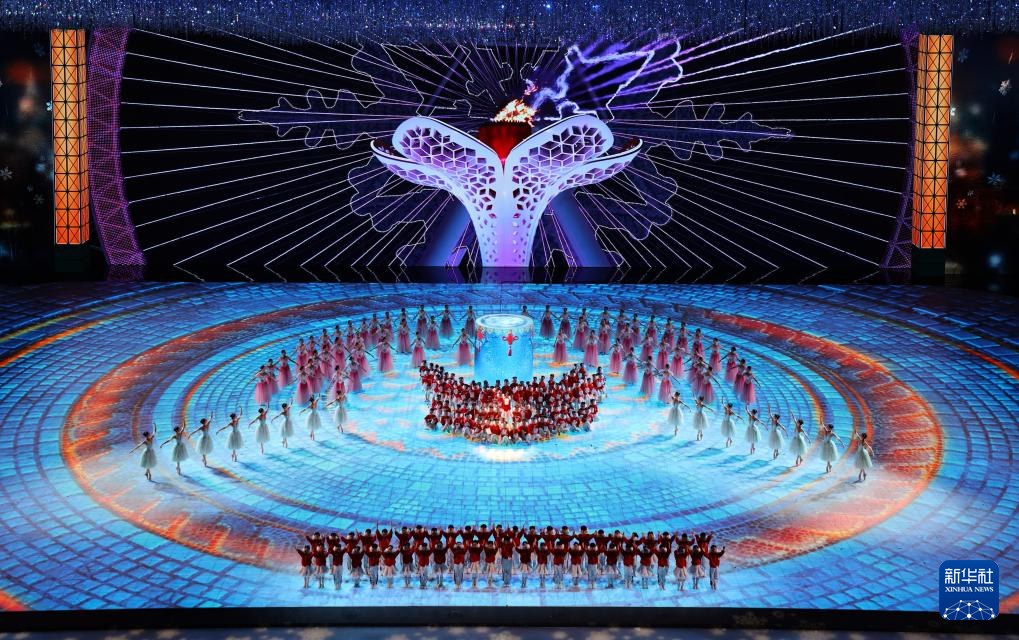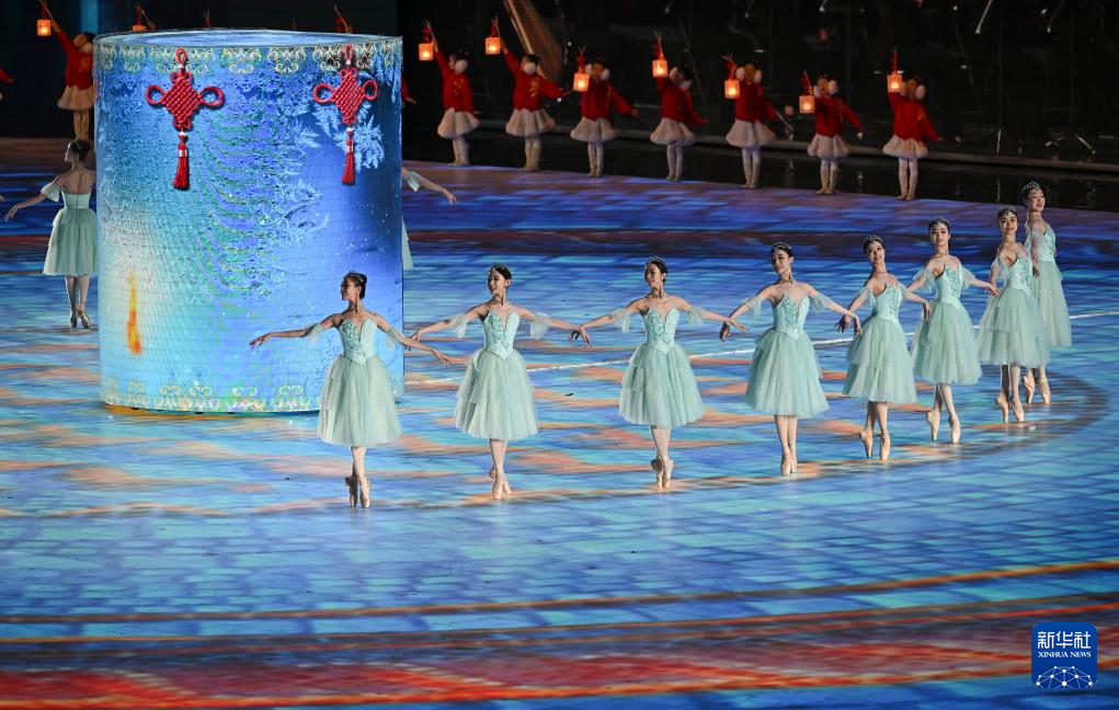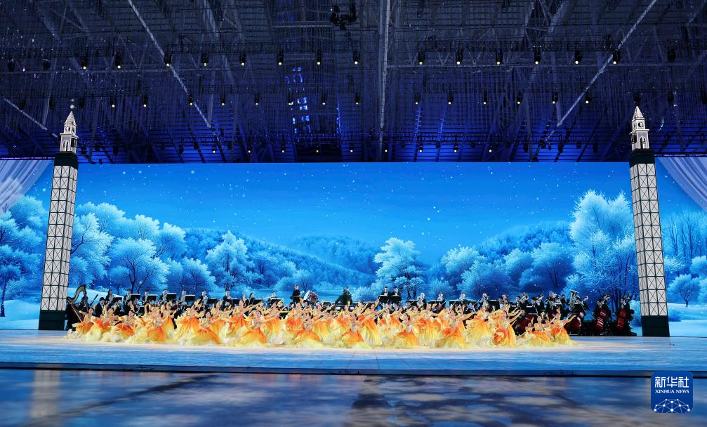 這是2月14日在閉幕式上拍攝的下一屆亞冬會主辦城市帶來的文藝表演。