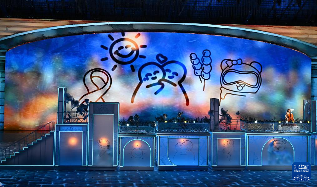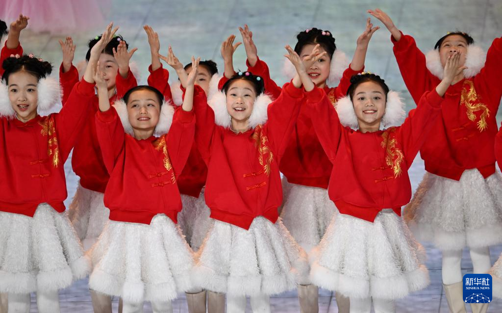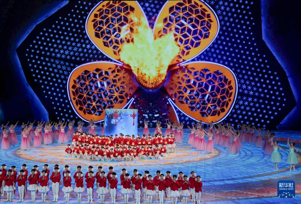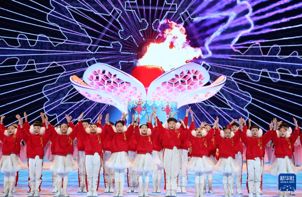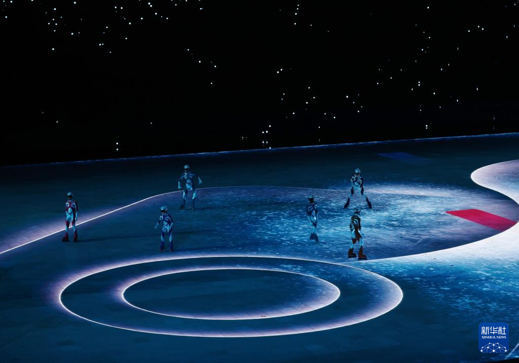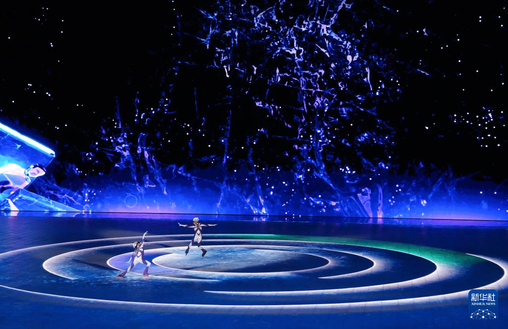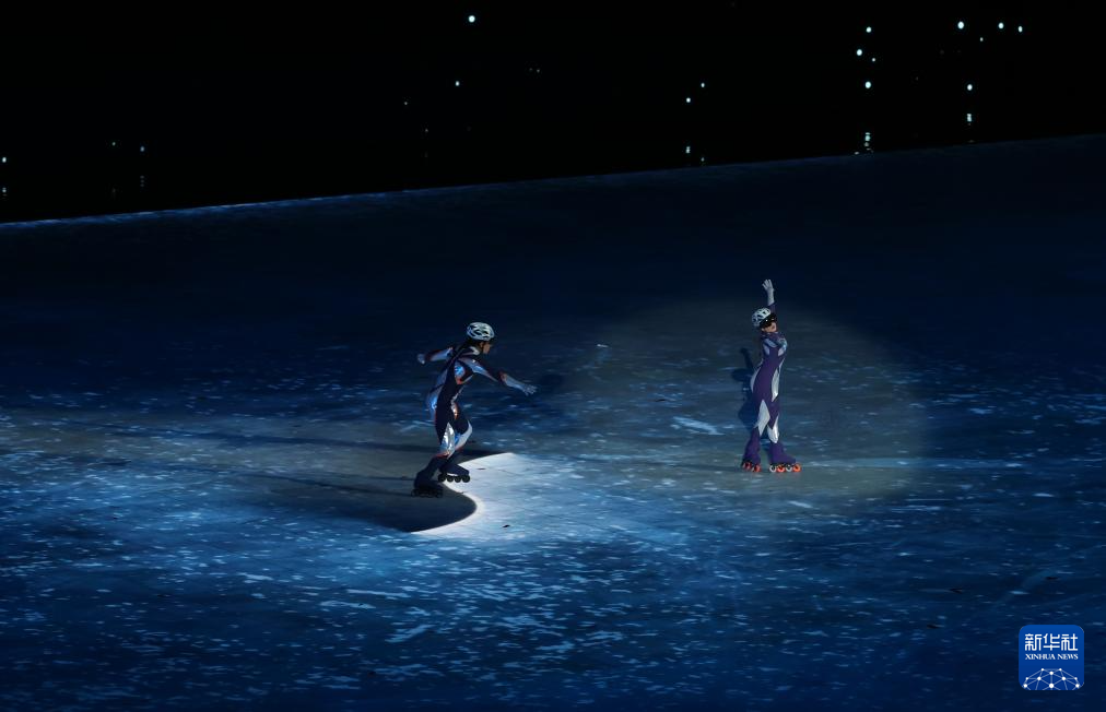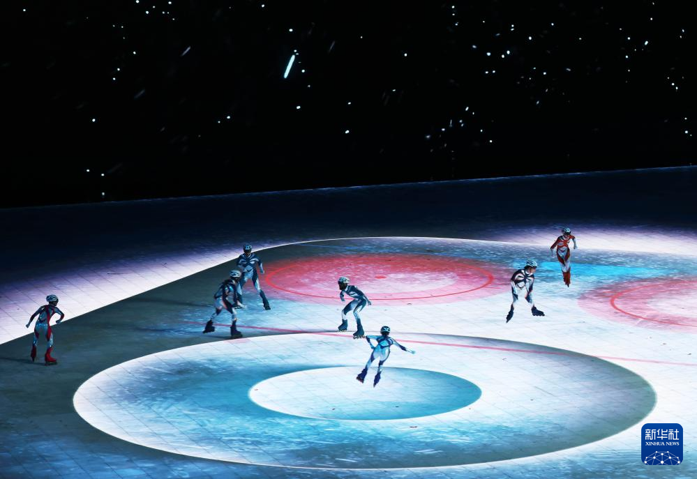 這是2月14日在閉幕式上拍攝的下一屆亞冬會主辦城市帶來的文藝表演。