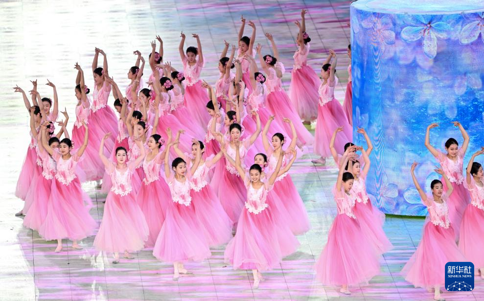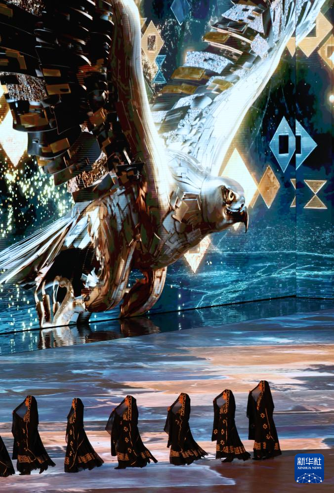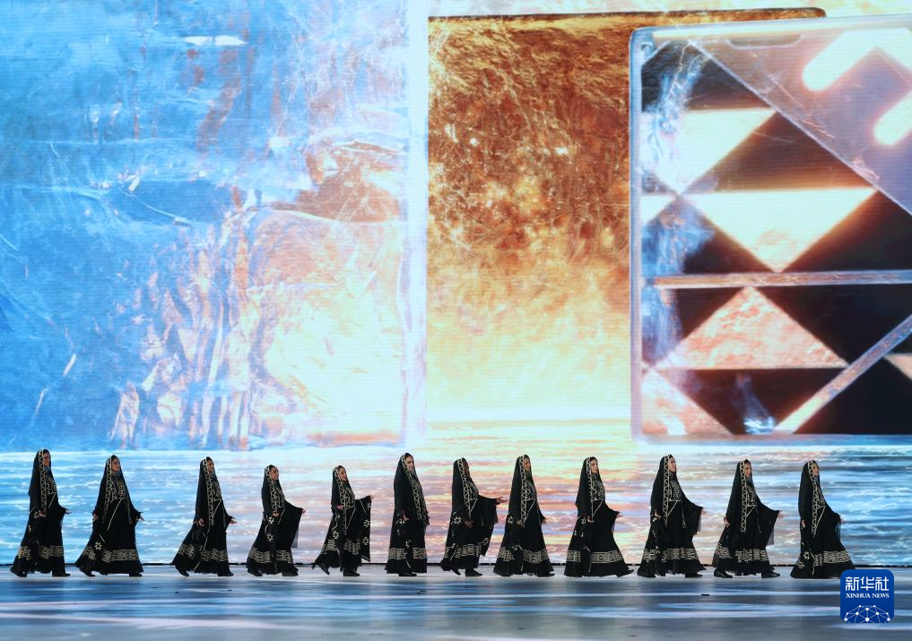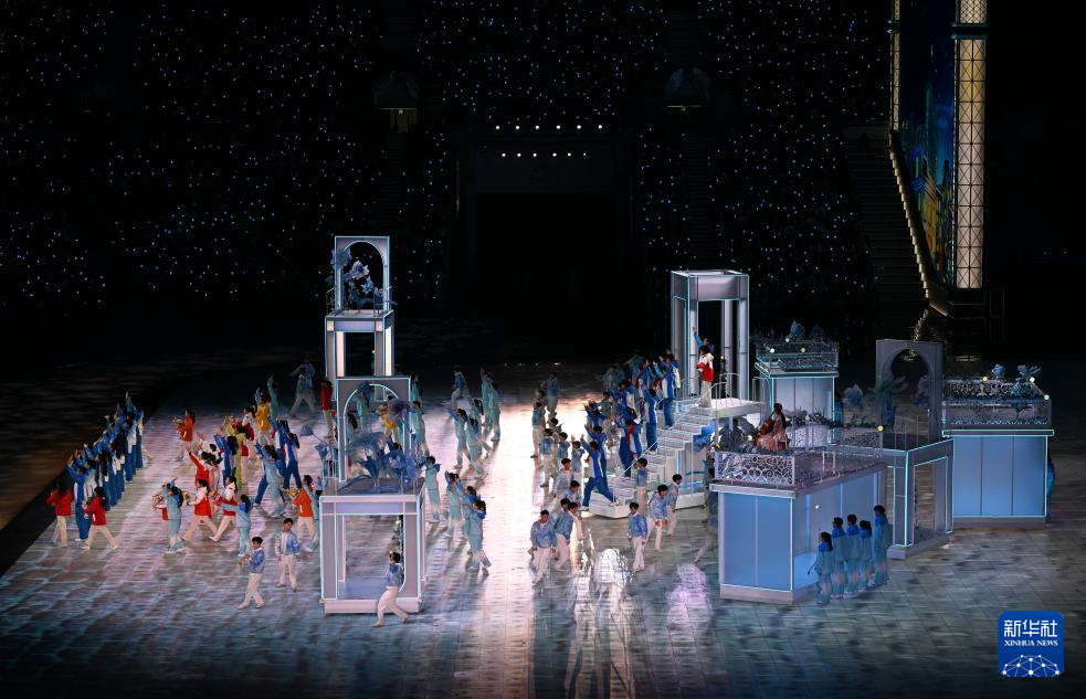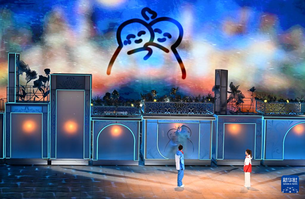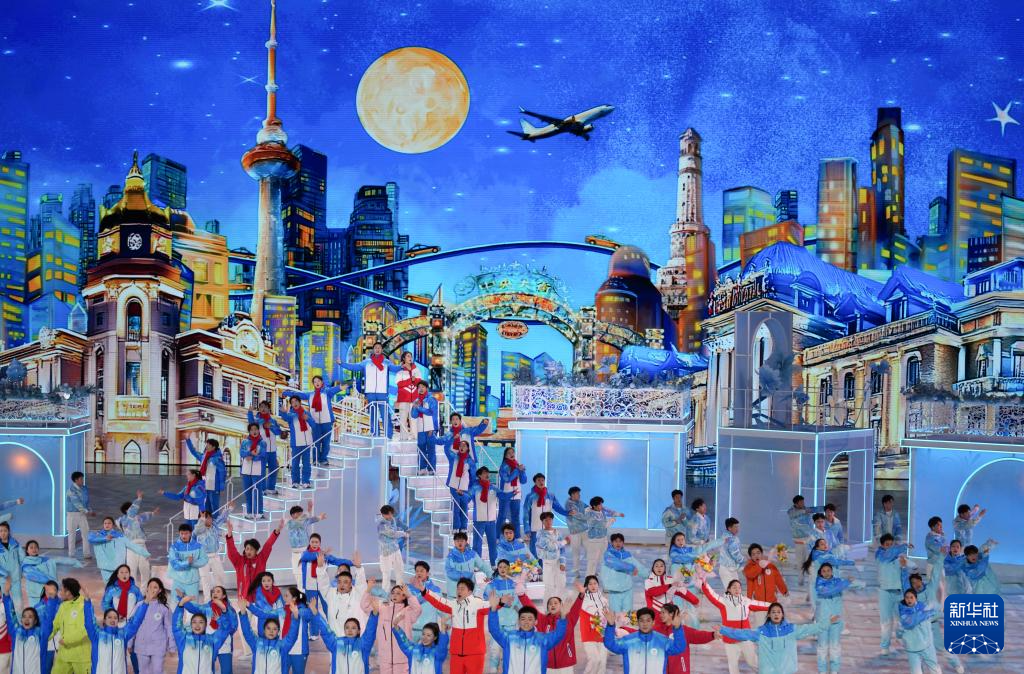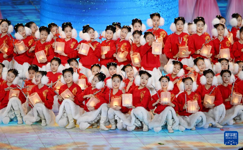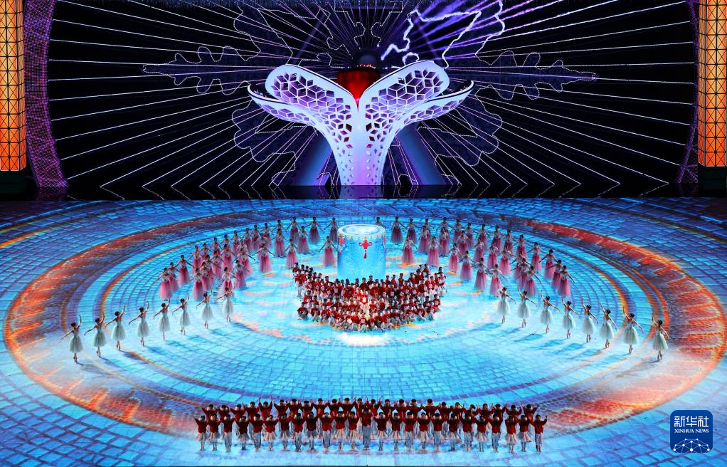 這是2月14日在閉幕式上拍攝的下一屆亞冬會主辦城市帶來的文藝表演。
