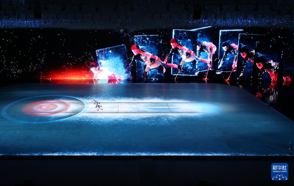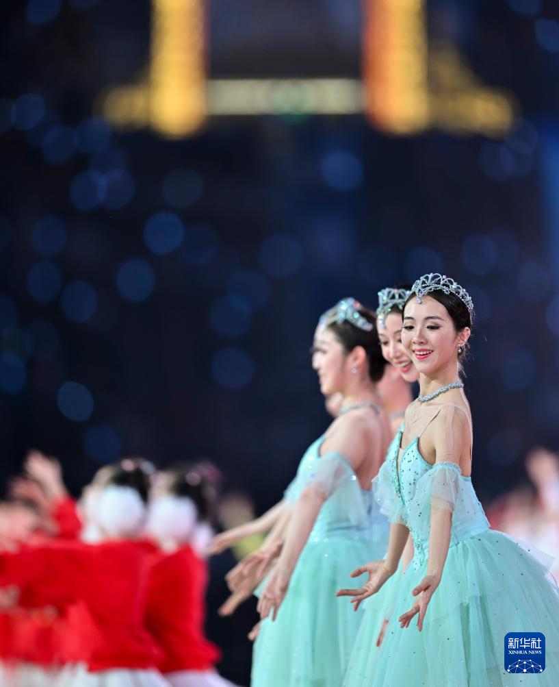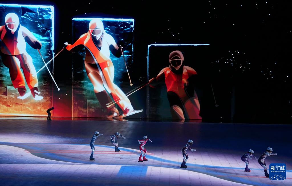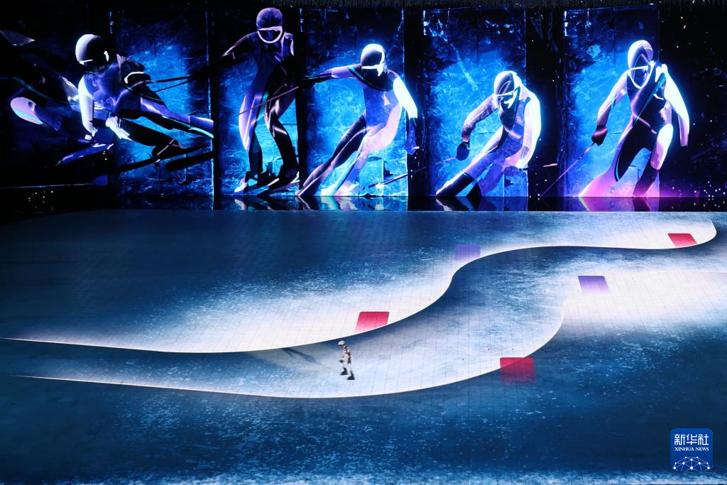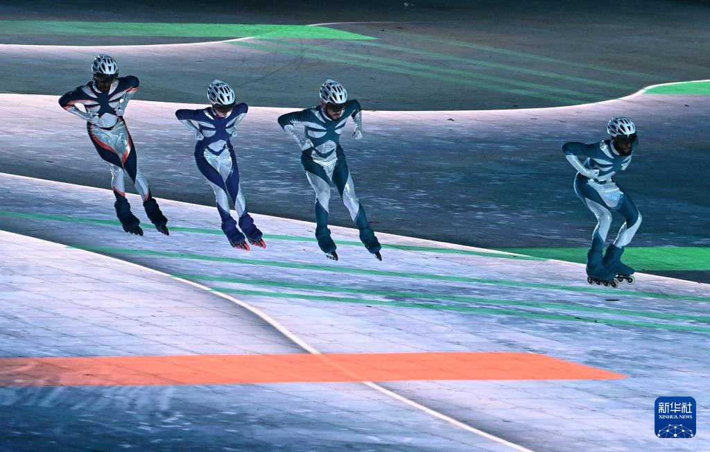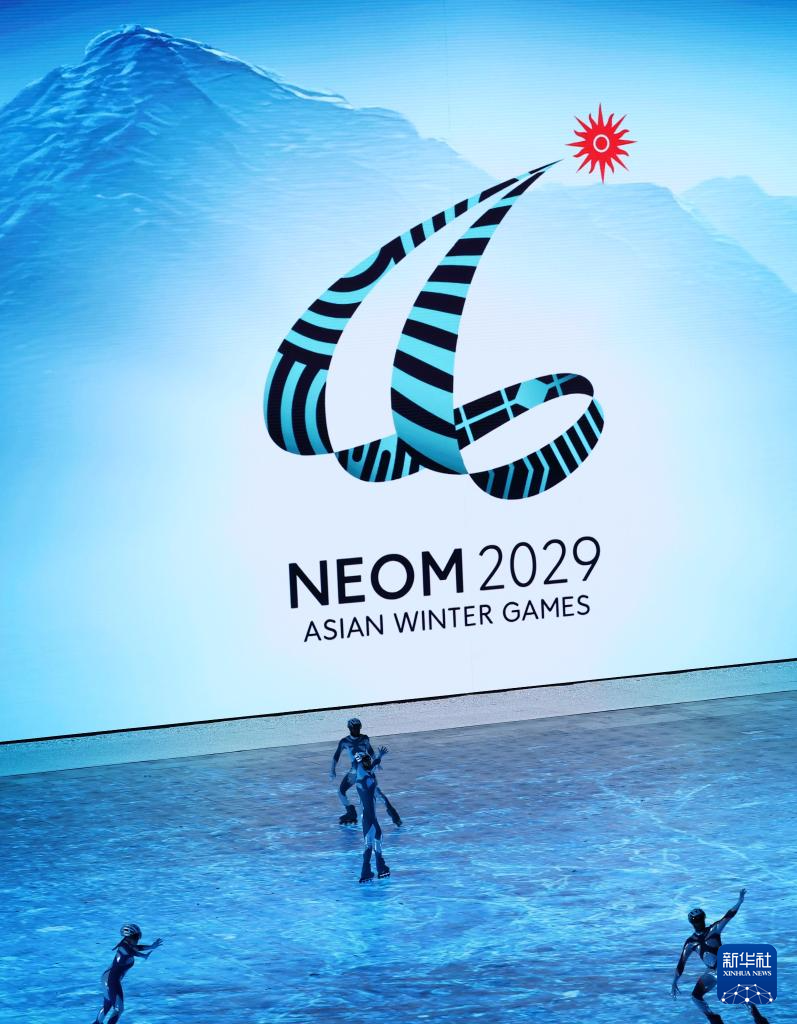 這是2月14日在閉幕式上拍攝的下一屆亞冬會主辦城市帶來的展演。