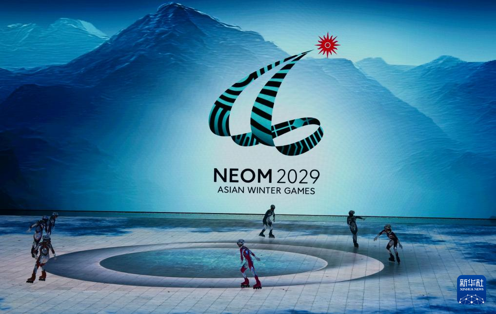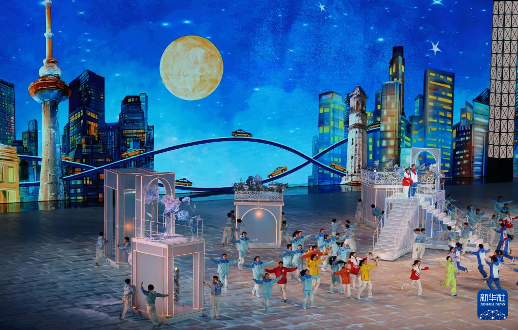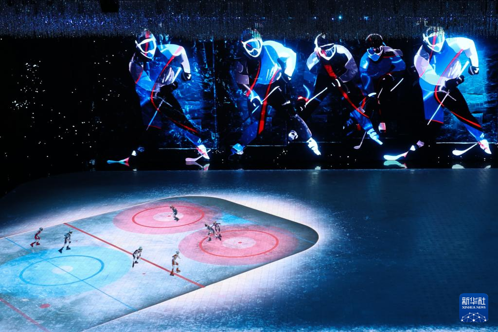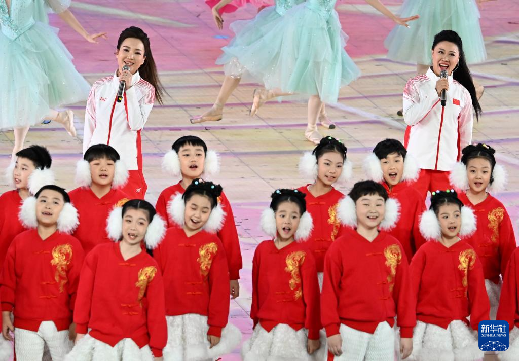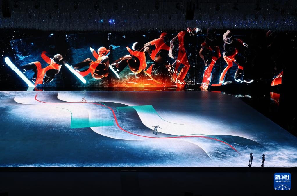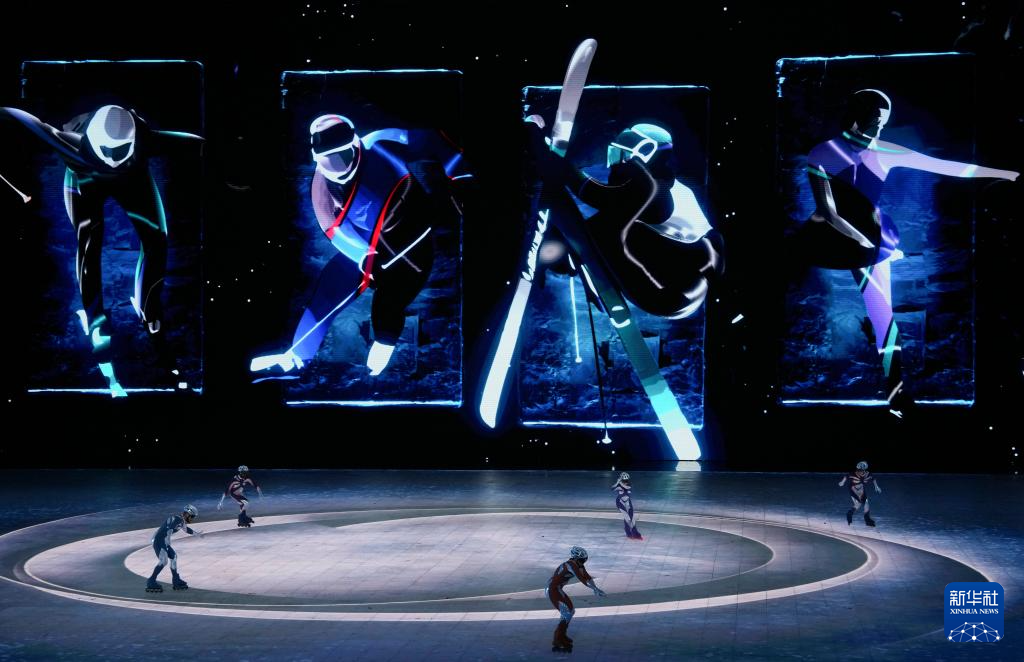 這是2月14日在閉幕式上拍攝的下一屆亞冬會主辦城市帶來的展演。