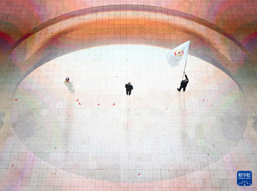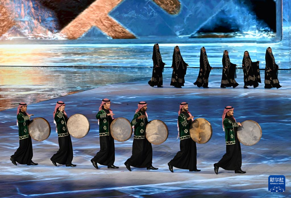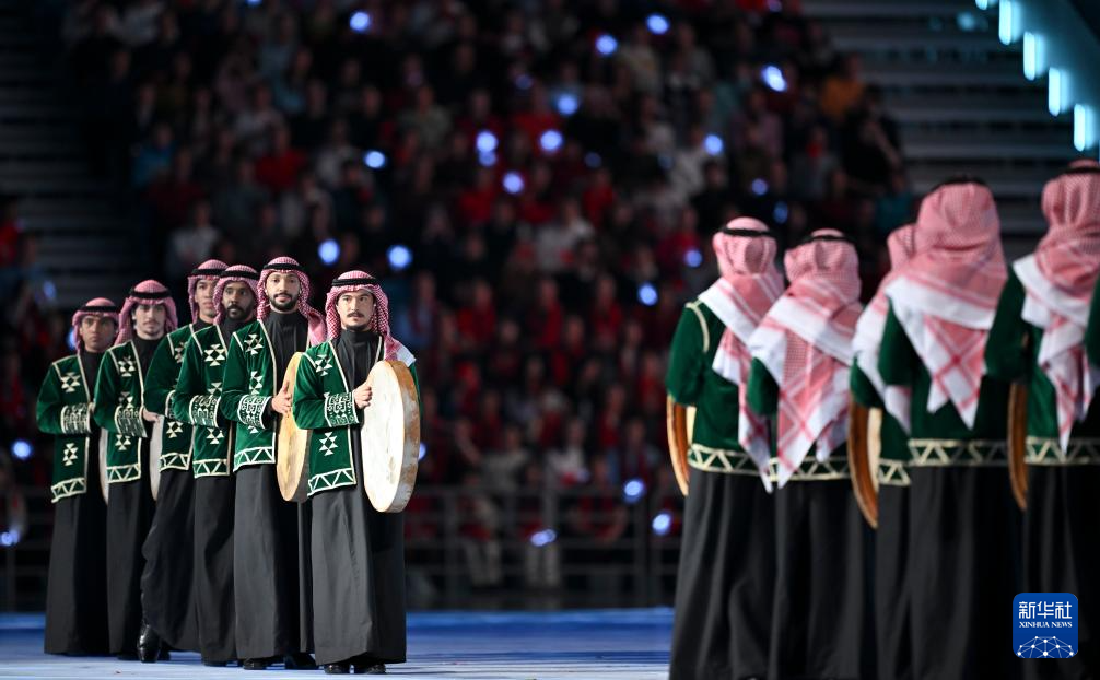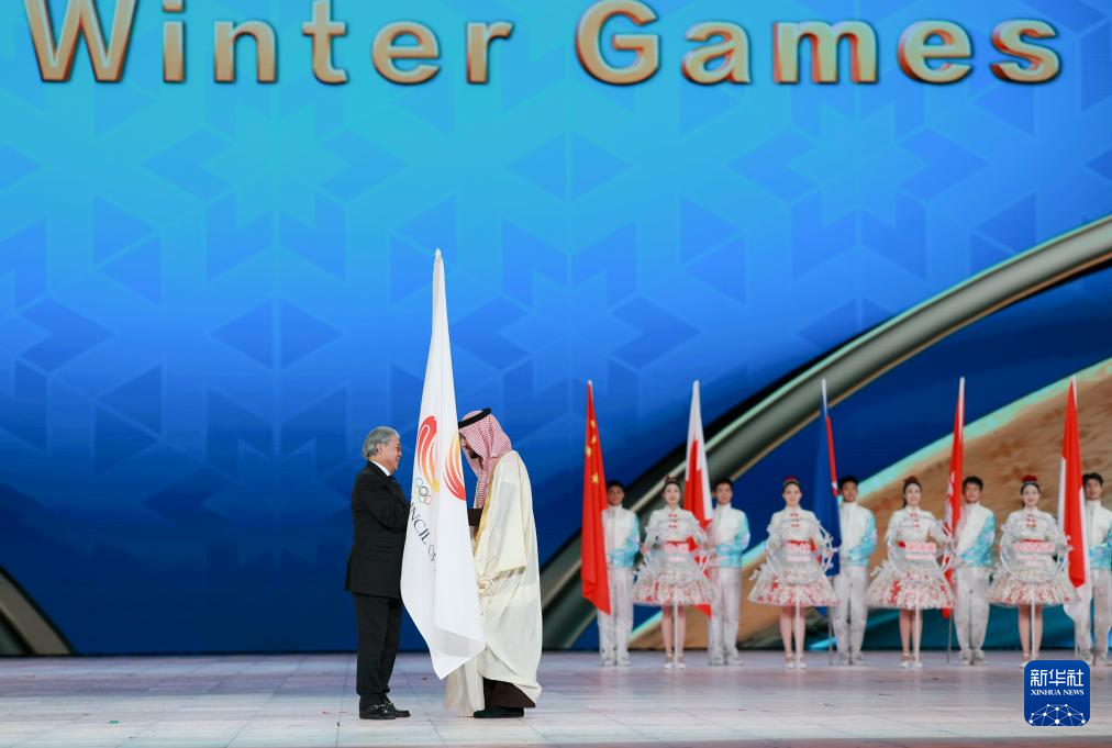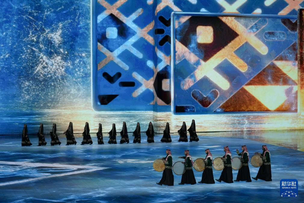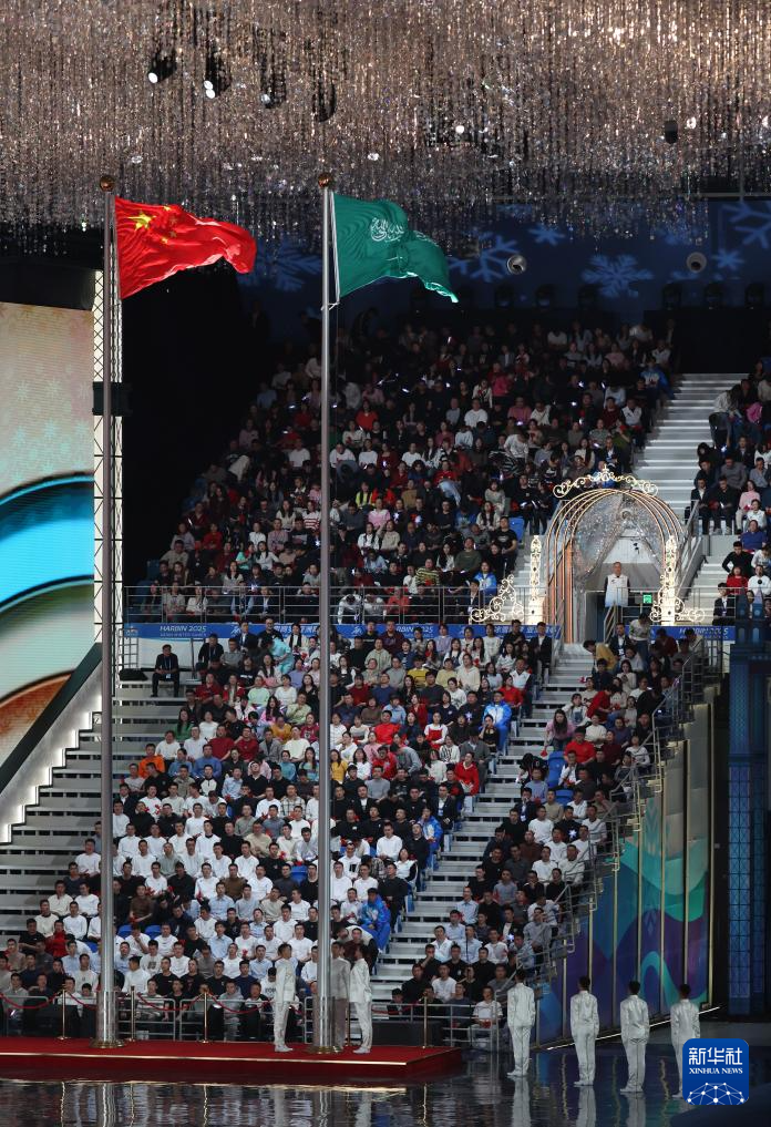 2月14日,中華人民共和國國旗和沙特阿拉伯國旗在閉幕式現場升起。