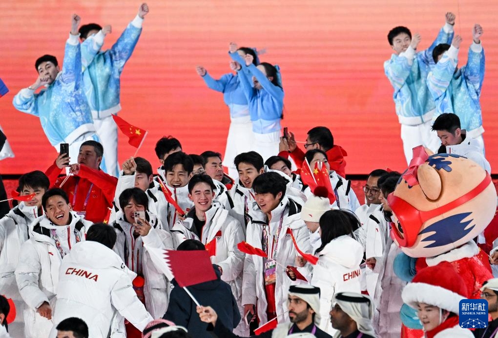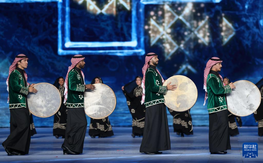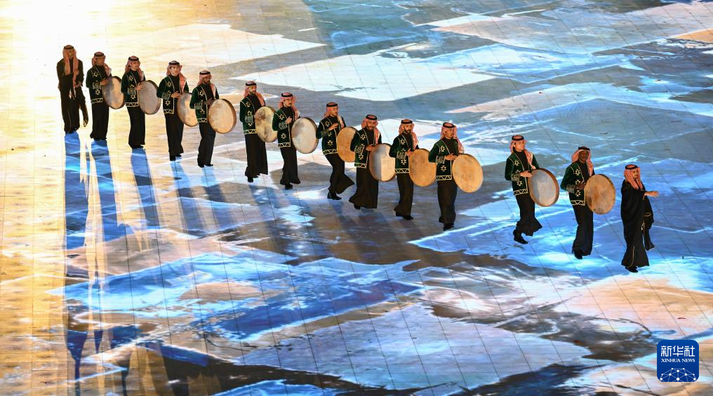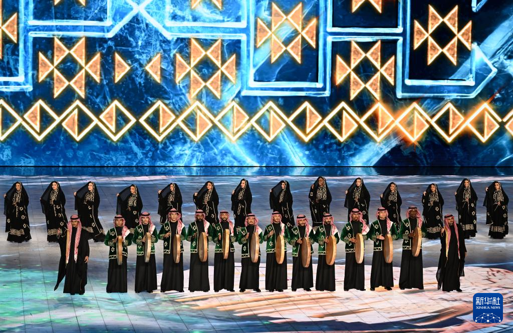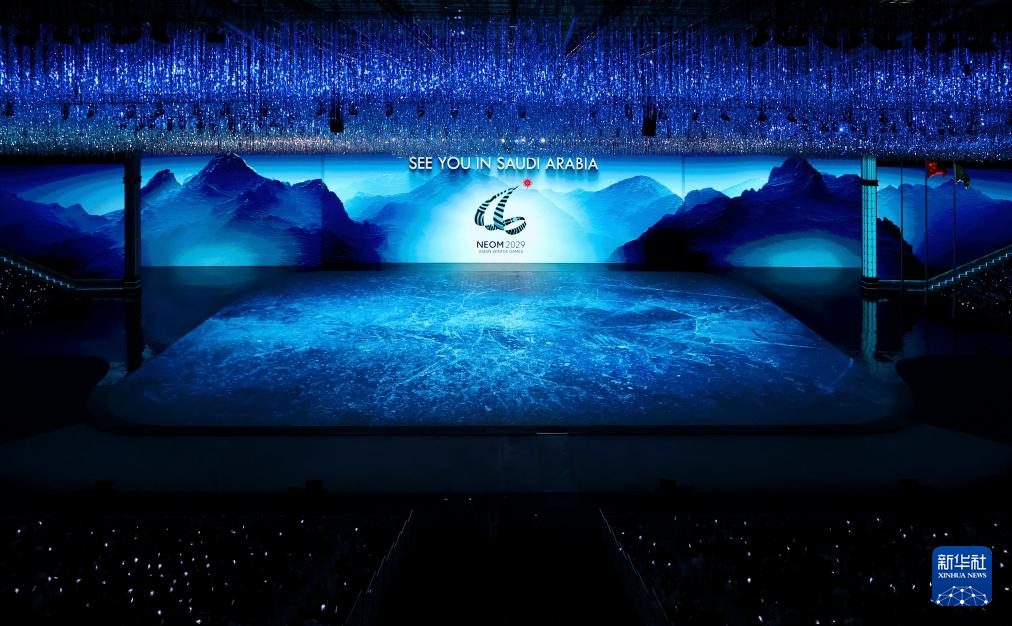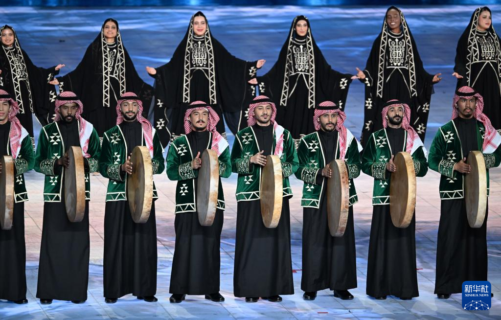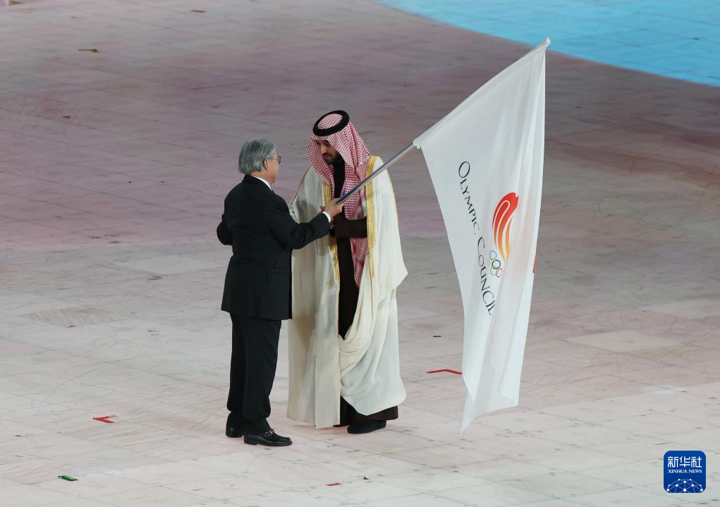 2月14日,中華人民共和國國旗和沙特阿拉伯國旗在閉幕式現場升起。