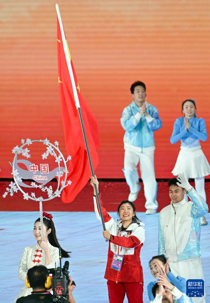 2月14日,中國體育代表團旗手徐夢桃在閉幕式上。