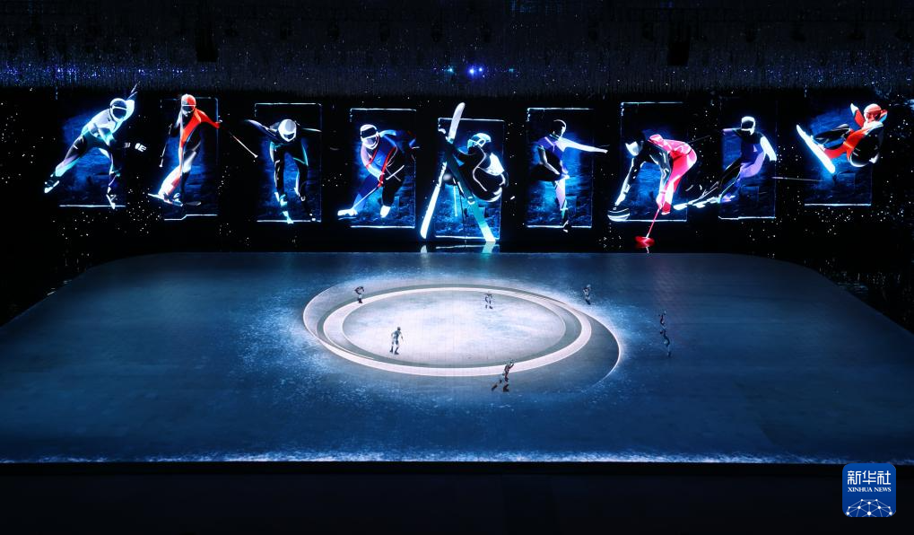 2月14日,閉幕式的屏幕上展示新華社記者拍攝的照片。