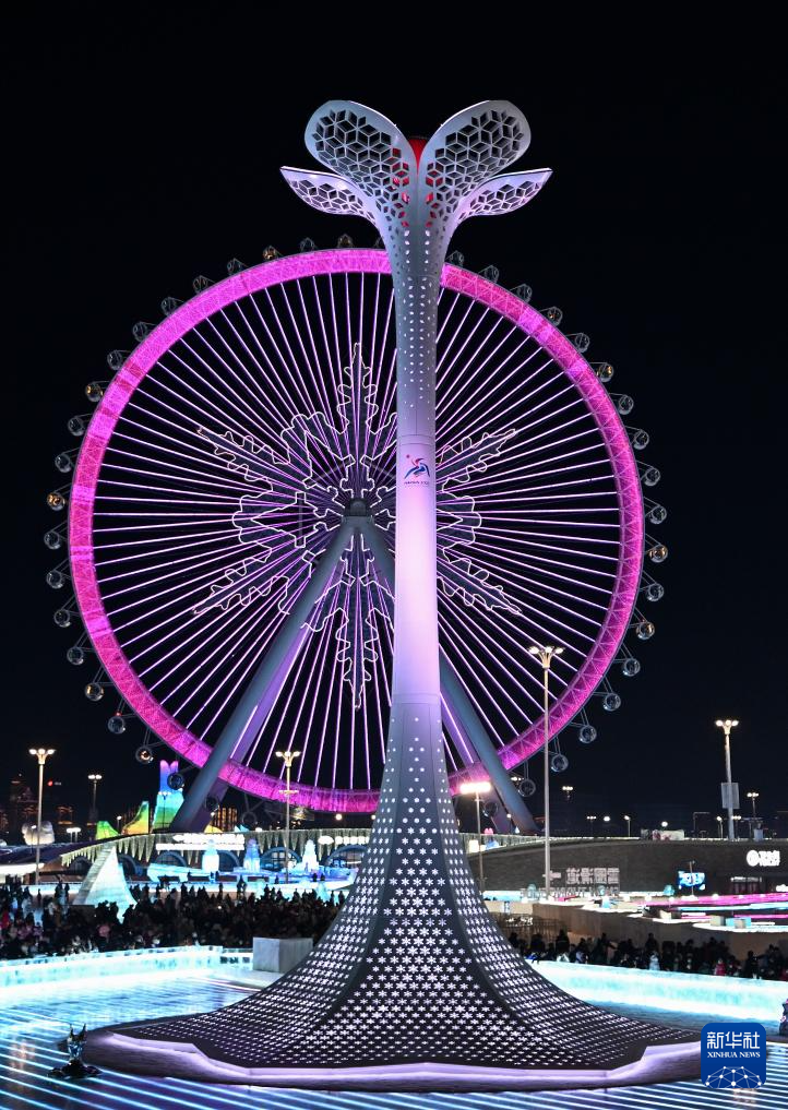 這是2月14日在哈爾濱冰雪大世界拍攝的亞冬會主火炬。