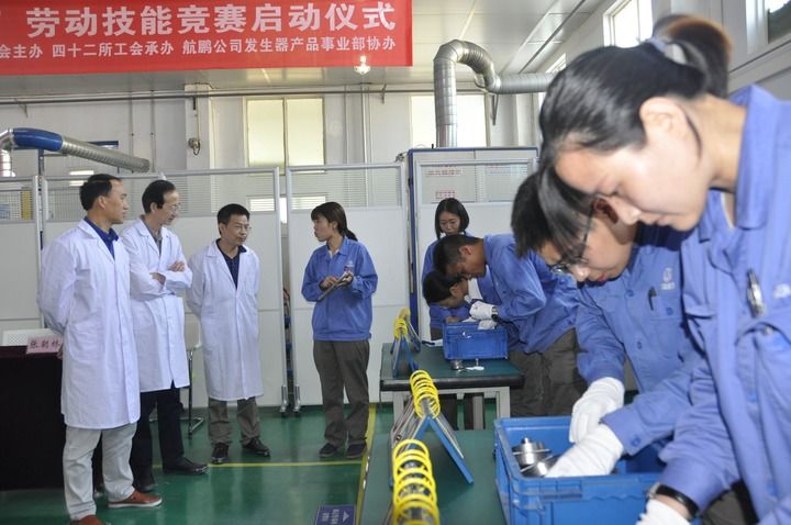 42所下屬湖北航鵬化學動力科技有限責任公司是汽車安全氣囊氣體發生器行業頭部企業,產品成功應用于國內外主流車型。在公司生產車間,只見一個個發生器有條不紊地生產下線,大屏幕對生產過程實時展示,只需要3個人的智能化生產線,實現產品質量信息電子化記錄和100%防錯追溯。
