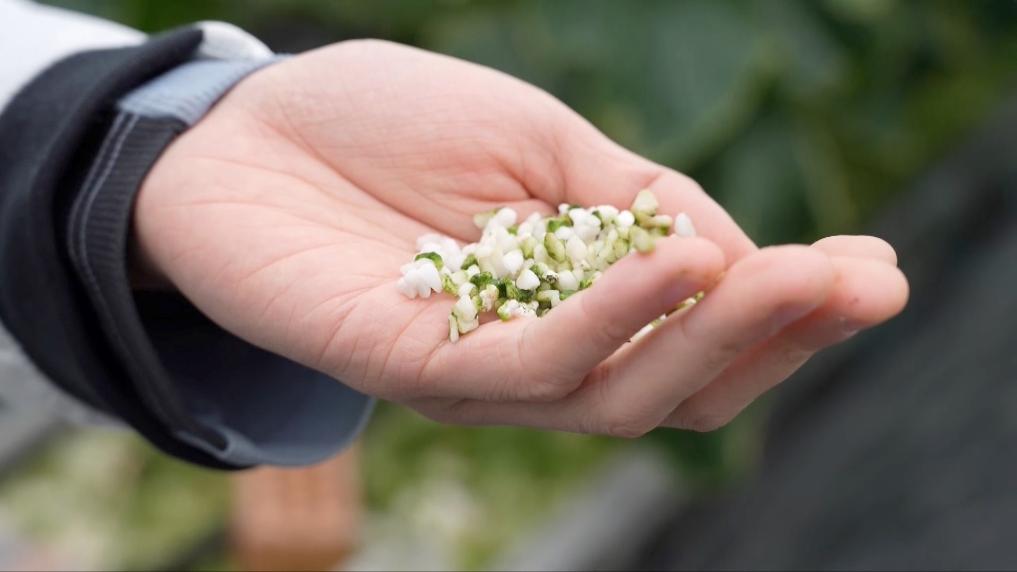 在廣西賓陽的一家現代化農業生產基地,果蔬種植靠的不是傳統的土壤,而是“石頭”。