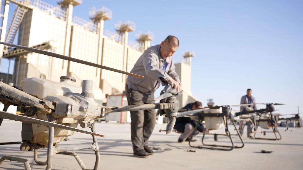 在河北滄州滄縣,“90后”新農人張宸正帶領團隊運用北斗導航技術,開展農事作業。
