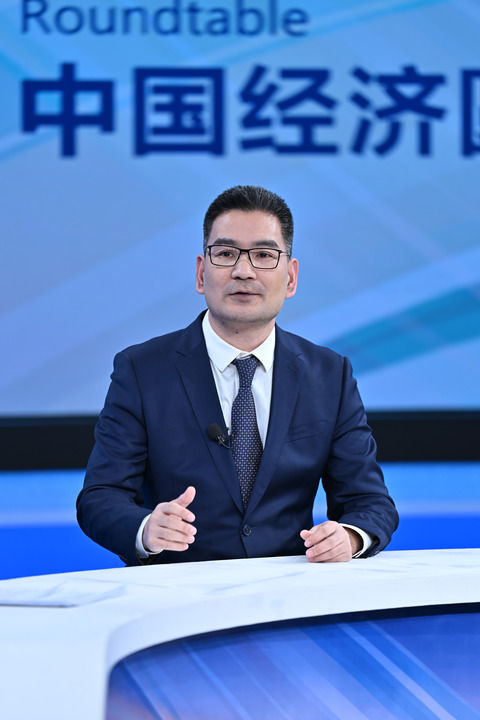 政府工作報告起草組成員、國務院研究室綜合一司副司長黃良浩在第十四期“中國經濟圓桌會”錄制現場發言。新華社記者 李鑫 攝