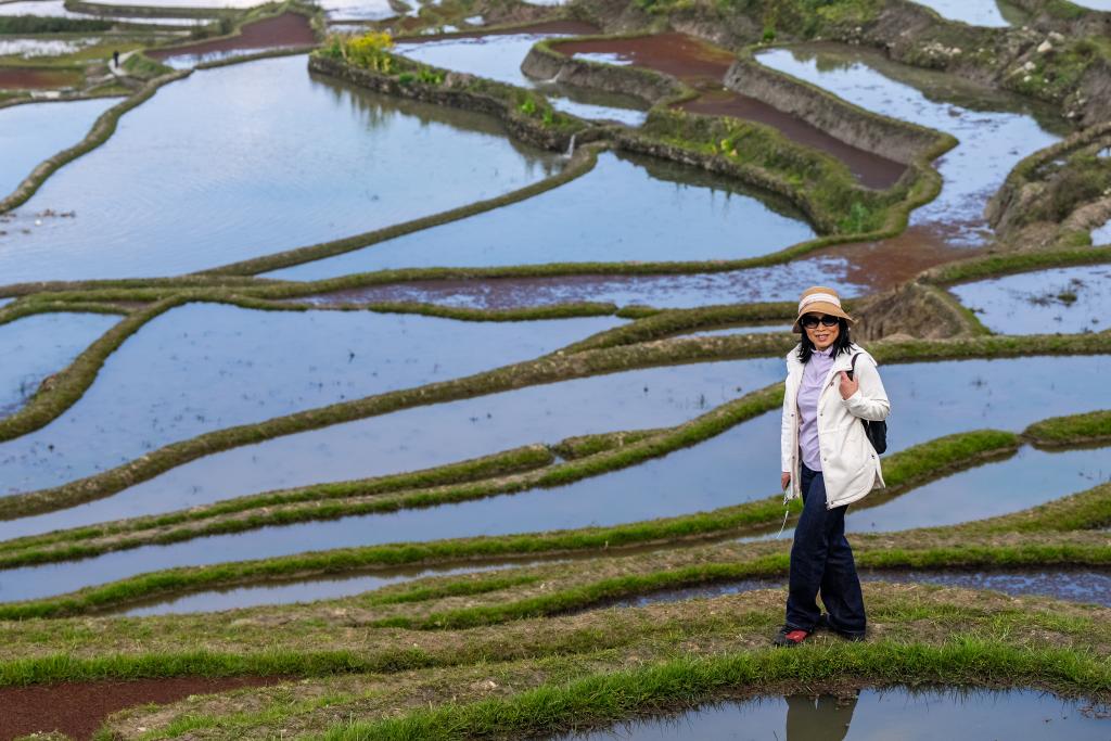 在云南省紅河哈尼族彝族自治州元陽縣哈尼梯田邊,游客正在拍照。新華社記者 胡超 攝