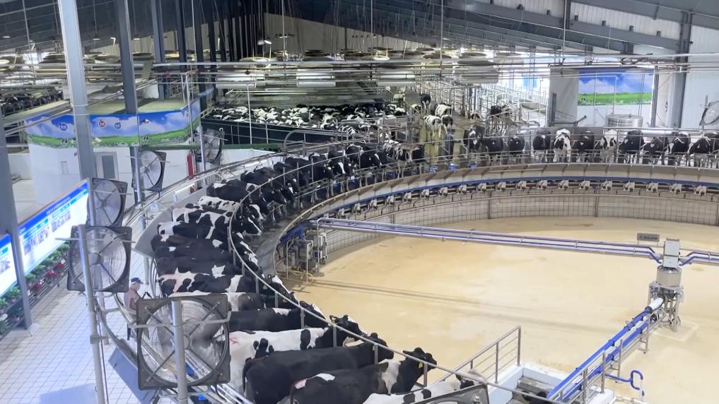 在蜂蜜香氣的吸引下,一頭頭奶牛走向無人擠奶機,機械臂靈敏地進行消毒、套杯、擠奶,新鮮牛奶便源源不斷生產出來。
