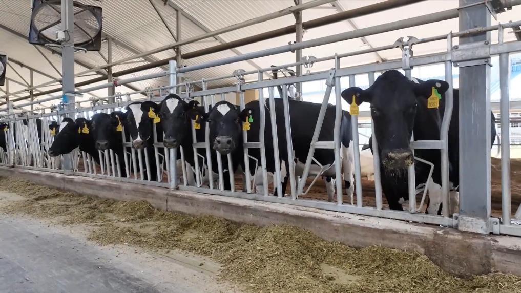 走進位于內蒙古呼和浩特市土默特左旗的敕勒川生態智慧牧場,奶牛們住進了“別墅”,在飼喂機器的幫助下品嘗午餐,水足飯飽后躺下休息。