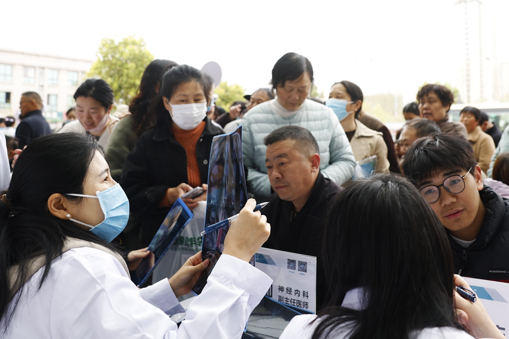 來自北京、上海的醫療專家在江蘇省宿遷市泗洪縣第一人民醫院為群眾義診(2025年3月30日攝)。新華社發(許昌亮 攝)