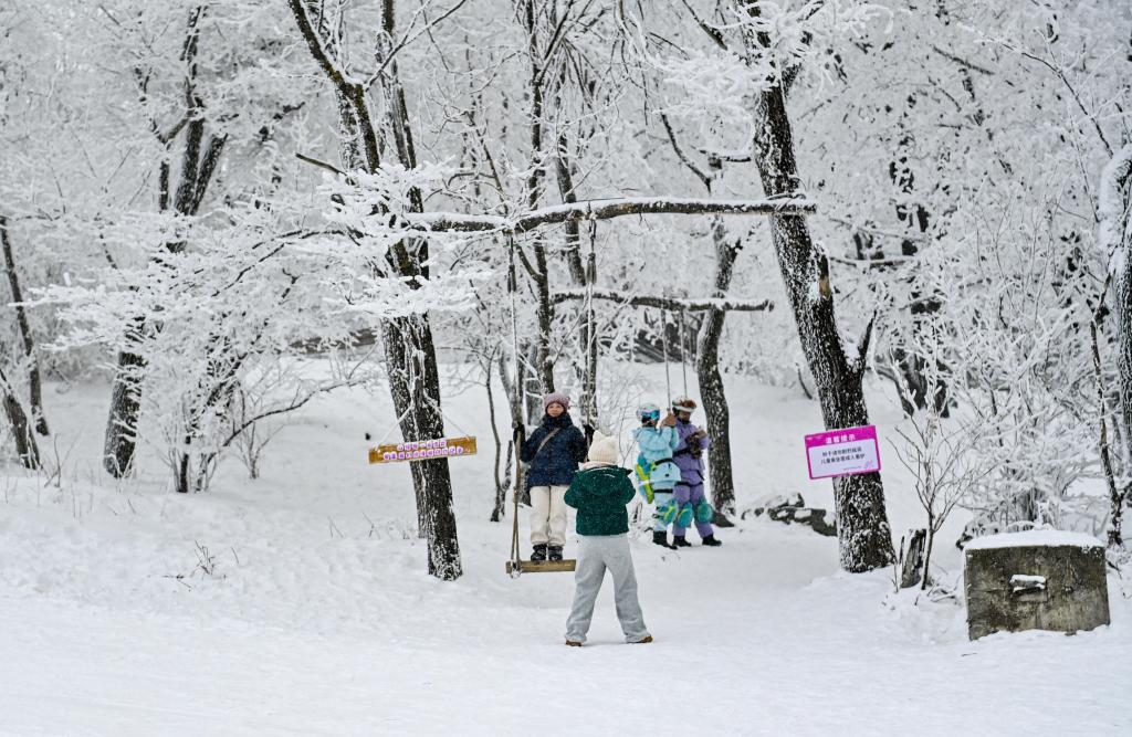 游客在吉林市萬科松花湖滑雪場山頂欣賞高山霧凇。新華社記者 顏麟蘊 攝