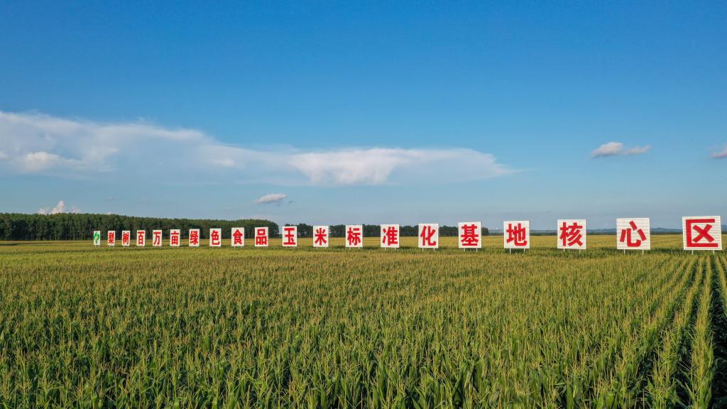 這是吉林省梨樹縣國家百萬畝綠色食品原料(玉米)標準化生產基地核心示范區(無人機照片)。新華社記者 張楠 攝