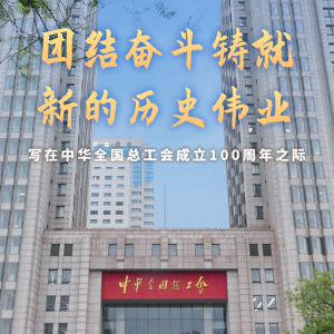 今年是中華全國總工會成立100周年。百年來,在中國共產黨領導下,中國工會組織動員億萬職工群眾團結拼搏、建功立業,為爭取民族獨立、人民解放和實現國家富強、人民幸福貢獻智慧和力量。