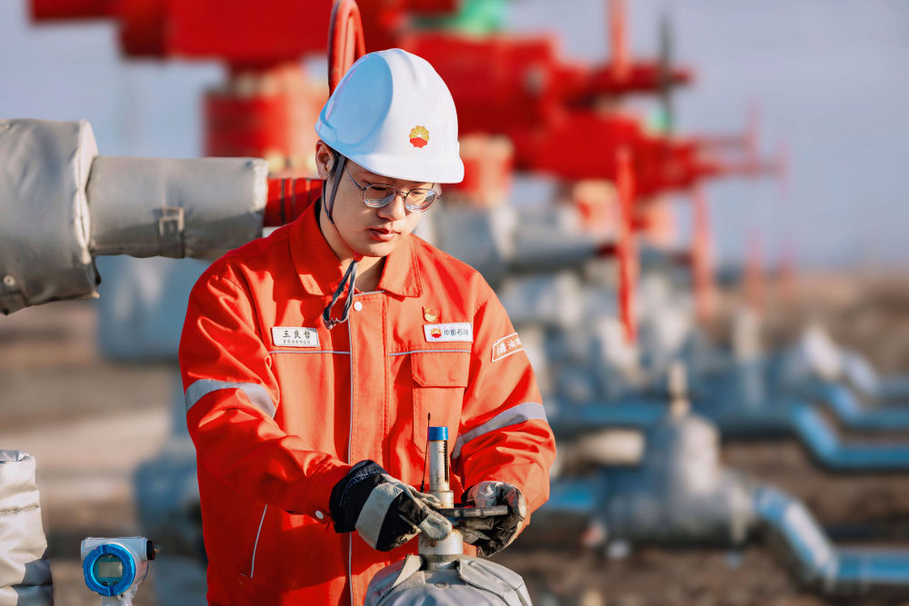 王良哲在吉慶油田作業區摸排新投產水平井的生產狀況(2025年4月15日攝)。新華社發