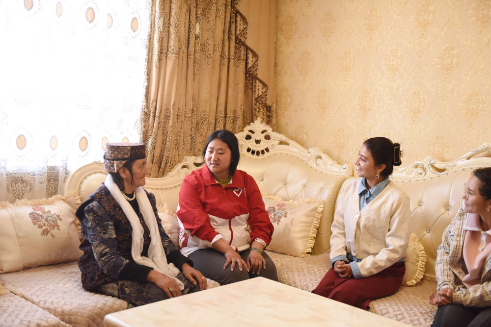 在新疆塔什庫爾干塔吉克自治縣,志愿者黃薈如(左二)在轄區內入戶走訪(2025年4月14日攝)。新華社記者 高晗 攝