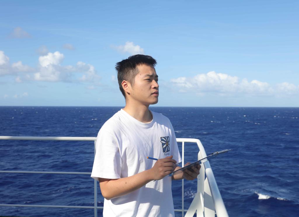 5月2日,隨船氣象員徐曉武正在甲板進行氣象觀測。新華社記者 黃韜銘 攝