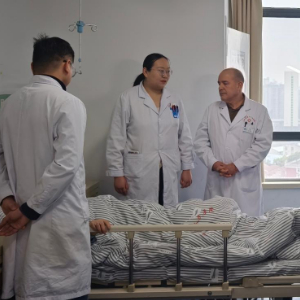 2月26日,佩德羅·卡斯特羅(右)和張慧雯在安徽省第二人民醫院病房內查房。新華社記者 郭晨 攝